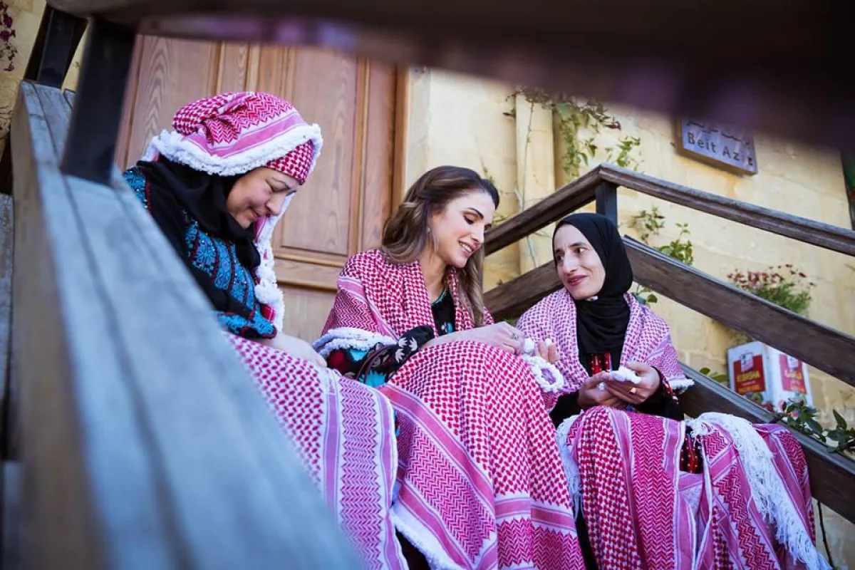وتبادلت الملكة رانيا الحديث مع السيدات المستفيدات مستمعة الى قصة هدب الشماغ التي تتوارثها السيدات عن أمهاتهن وجداتهن باعتبارها هدية غالية تقدمها الأم لابنها أو لزوجها، حيث تعتمد المبادرة في التسويق على مواقع التواصل الاجتماعي، فضلا عن بعض المراكز والمؤسسات وتقدم خدمات التوصيل والتغليف الذي يناسب تقديم المنتج كهدية.