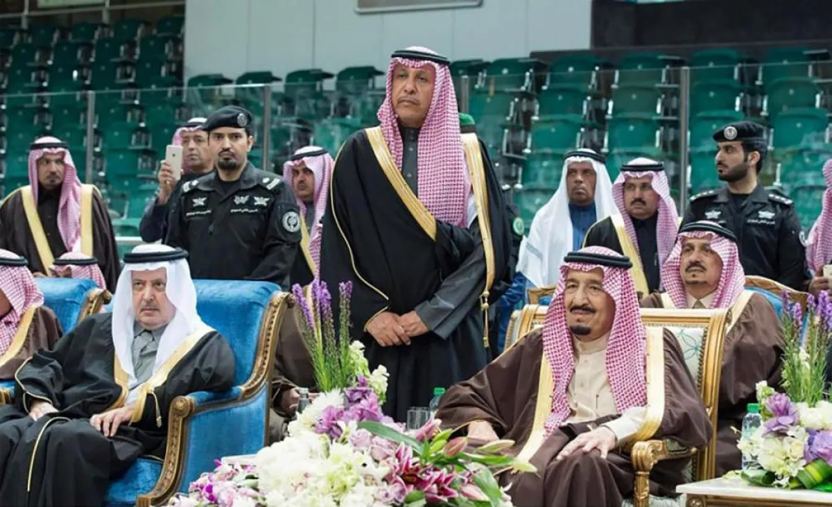 ووصل الملك إلى مقر الحفل في الصالات الرياضية بمرافقة الأمير سلطان بن سلمان بن عبدالعزيز، رئيس الهيئة العامة للسياحة والتراث الوطني، والأمير سعود بن سلمان بن عبدالعزيز، وكان في استقبالهما الأمير فيصل بن بندر بن عبدالعزيز، أمير منطقة الرياض، والأمير متعب بن عبدالله بن عبدالعزيز، وزير الحرس الوطني رئيس اللجنة العليا للمهرجان الوطني للتراث والثقافة، والأمير محمد بن نايف بن عبدالعزيز، ولي العهد نائب رئيس مجلس الوزراء وزير الداخلية.
