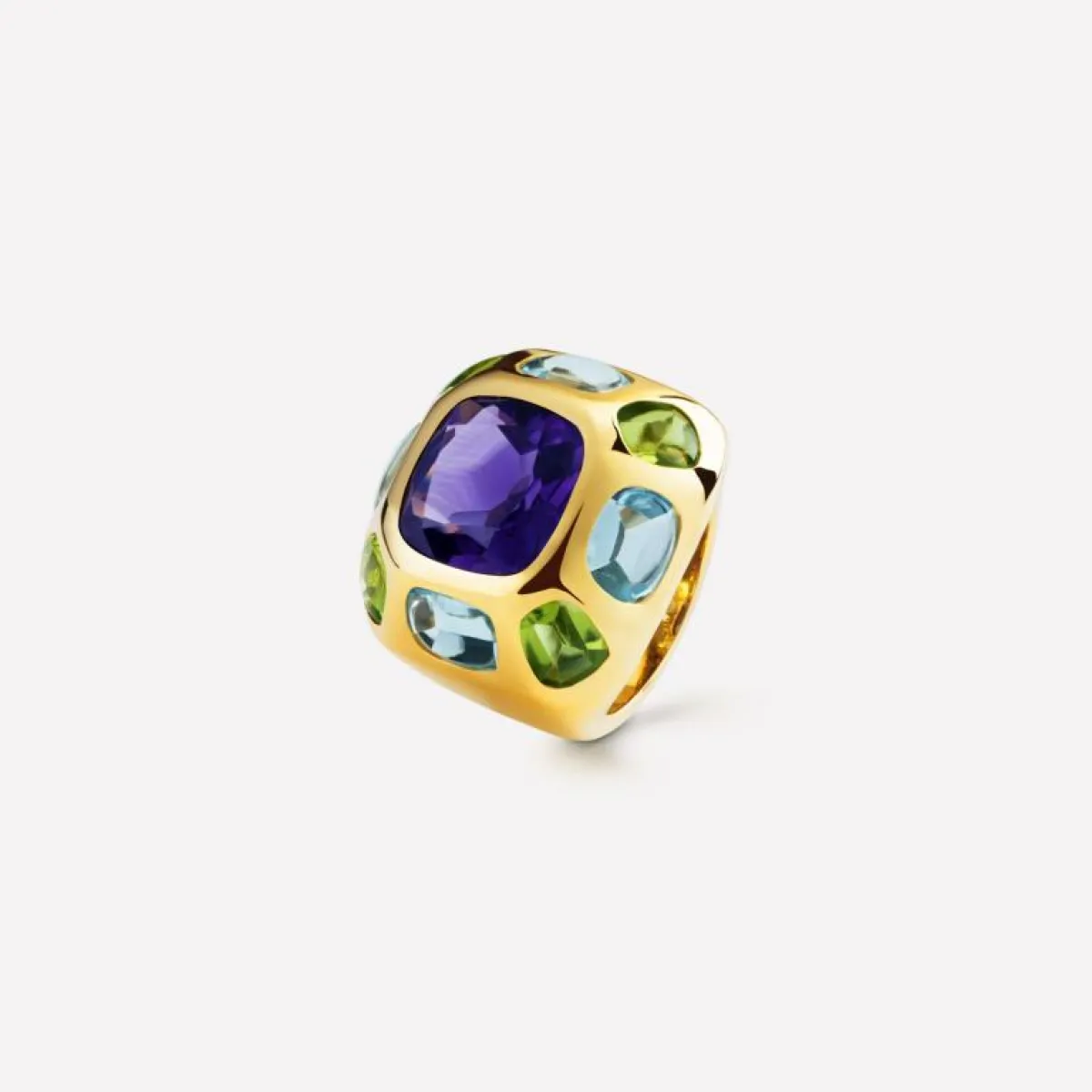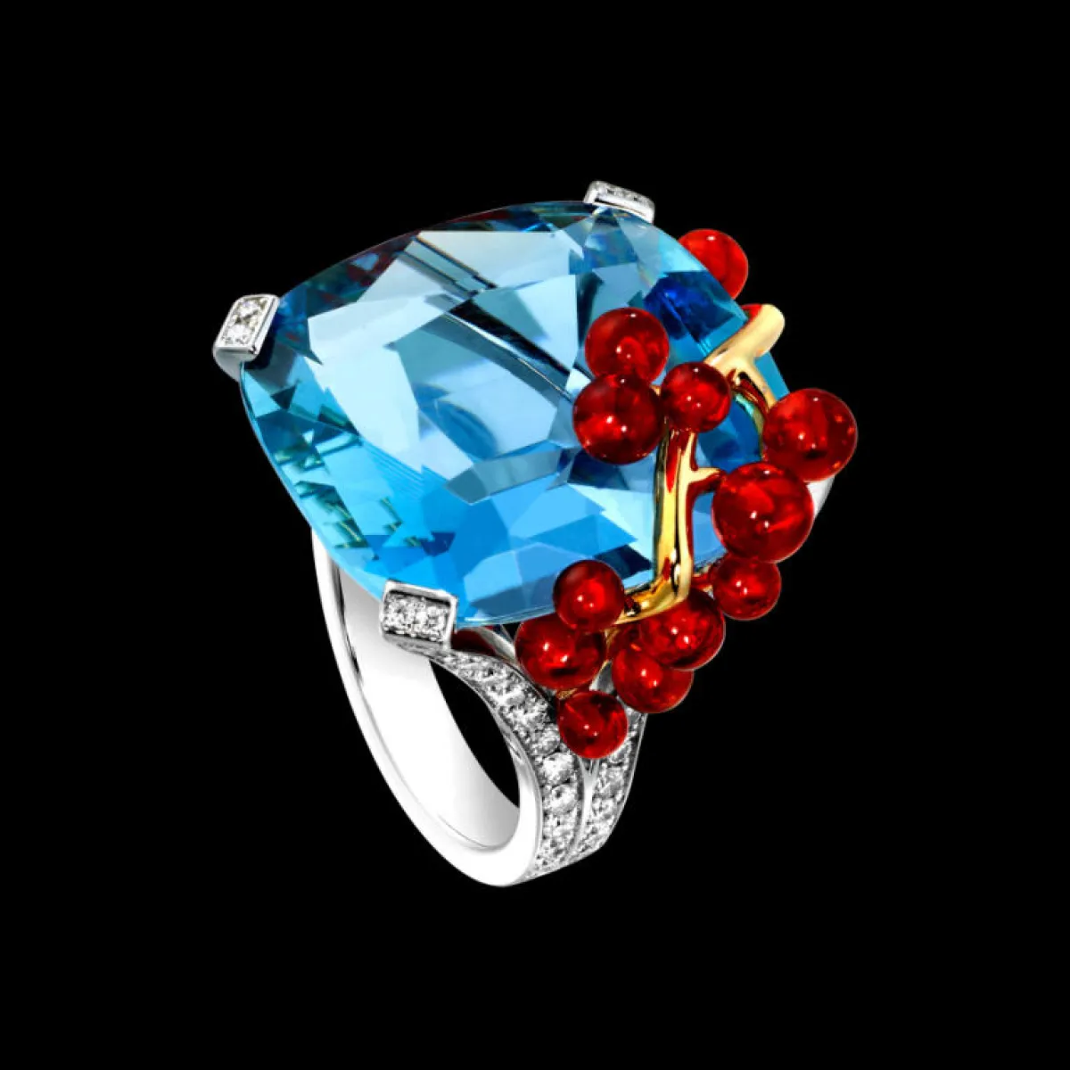 وبالطبع تُعتبر الخواتم من القِطع المميزة في المجوهرات، والمفضلة عند أغلبية السيدات، لذلك اختارت دور المجوهرات العالمية أن تقدّم في ربيع 2017 خواتم مزينة بمجوهرات ذاتِ ألوان جذابة ومميزة. فزيّنت بولغاري Bulgari خاتماً من مجموعة "هاي جولوري" High Jewelery بالياقوت الأزرق والزمرد. بينما اختارت شانيل Chanel أن تزيّن خاتمها بقطع كبيرة من الأحجار الكريمة الملونة. أما ديور Dior فقد اختارت أن تزيّن خاتمها المصنوع من الذهب الأبيض ، وقطعة كبيرة من حجر الأكوامارين AQUAMARINE بتصاميم ورود وفراشات متعددة الألوان. بالإضافة إلى دي غريزوغونو De grisogono التي ابتكرت تصميمَ خاتمٍ مميز، حيث زيّنت وجه الخاتم بعدد كبير من الأحجار الكريمة المتنوعة والملونة، ما أعطاه شكلاً جذاباً ومميزاً. وغيرها من كبرى دور المجوهرات العالمية التي قدّمت خواتم ملونة ومزينة بأحجار كريمة، مثل بياجيه Piaget، وفان كليف أند أربلز van cleef and arples، وتيفاني أند كو Tiffany and co.، وغيرها.