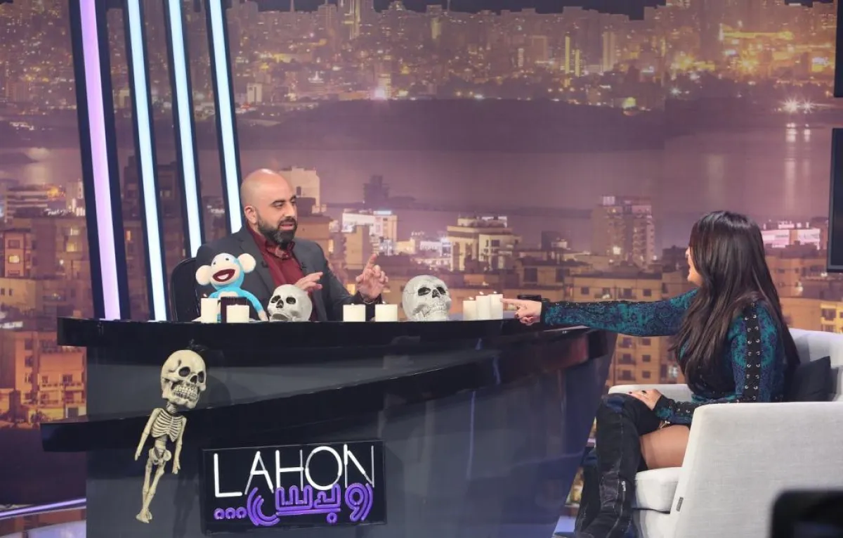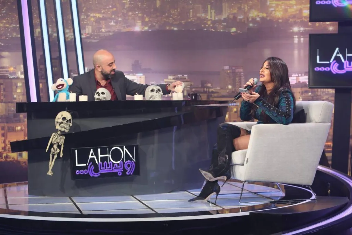 شذى قالت: إنها توزّع وقتها بين بيروت ولندن ودبي، ثم استبدلت ملابسها قبل أن تعود إلى استكمال الحلقة.