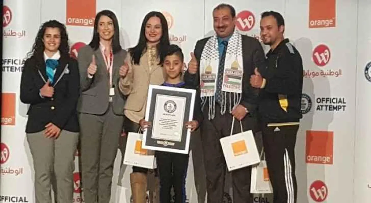 تمكن الطفل الفلسطيني محمد الشيخ من الدخول لموسوعة غينيس للأرقام القياسية بعد أن حطم الرقم القياسي بـ 38 حركة على الأرض في دقيقة واحدة.