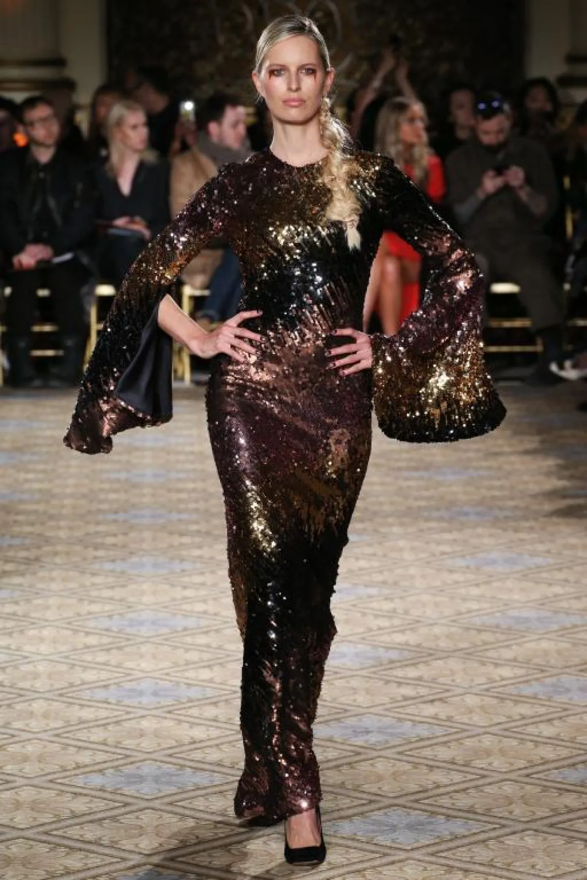 ووقفتنا الثانية مع مصمم الأزياء الشاب "كريستيان سيريانو" Christian Siriano الذي قدم أيضاً مجموعة غنية، غلب عليها الطابع الفخم، وقد استخدم فيها خليطاً مميزاً من الأقمشة التي تنوعت بين الفرو، والكريب، والشيفون، أقمشة الترتر البراقة، والأقمشة المعدنية اللامعة، كما رأينا فيها خليط من الألوان الشتوية الدافئة تنوعت بين العنابي، الزهري، البرونزي، الفضي، والأسود طبعاً. وفي ختام المجموعة قدم تشكيلة من فساتين السهرة الفاخرة والمميزة.