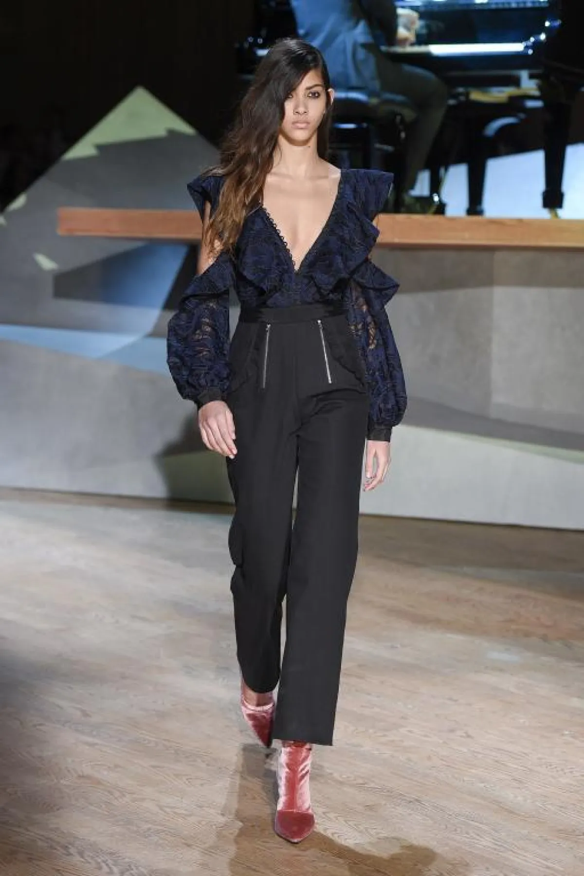 والبداية كانت مع عرض أزياء دار "الكسندر وانغ" Alexander Wang الصاخب والذي يعتبر أحد أهم العروض على جدول أسبوع الموضة في نيويورك، وهذا الموسم أكثر من أي موسم آخر بدت المجموعة ناضجة، اختلط فيها نمط الروك اند رول المتمرد مع النمط الكلاسيكي الأنثوي، وقد كان اللونان الأسود والرمادي هما الأكثر حضوراً، فشاهدنا تصاميم المعاطف الثقيلة، مع البدلات الرسمية، اضافة الى التنانير القصيرة والشورت المصنوعة من الجلد، اضافة الى بعض تصاميم الفساتين الناعمة والجمبسوت المرصّعة بحبات الكريستال البراقة. وقد شاهدنا ضمن صف العارضات صديقات المصمم المقربات "بيلا حديد" Bella Hadid، و"كينديل جينير" Kendall Jenner.