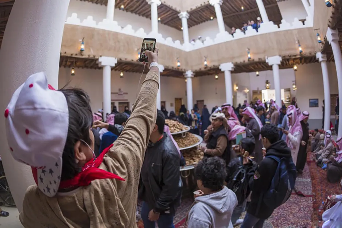 ويعكس الجناح حقيقة المجتمع السعودي وكرم ضيافته وحفاوته بالزوار بشكل عام.