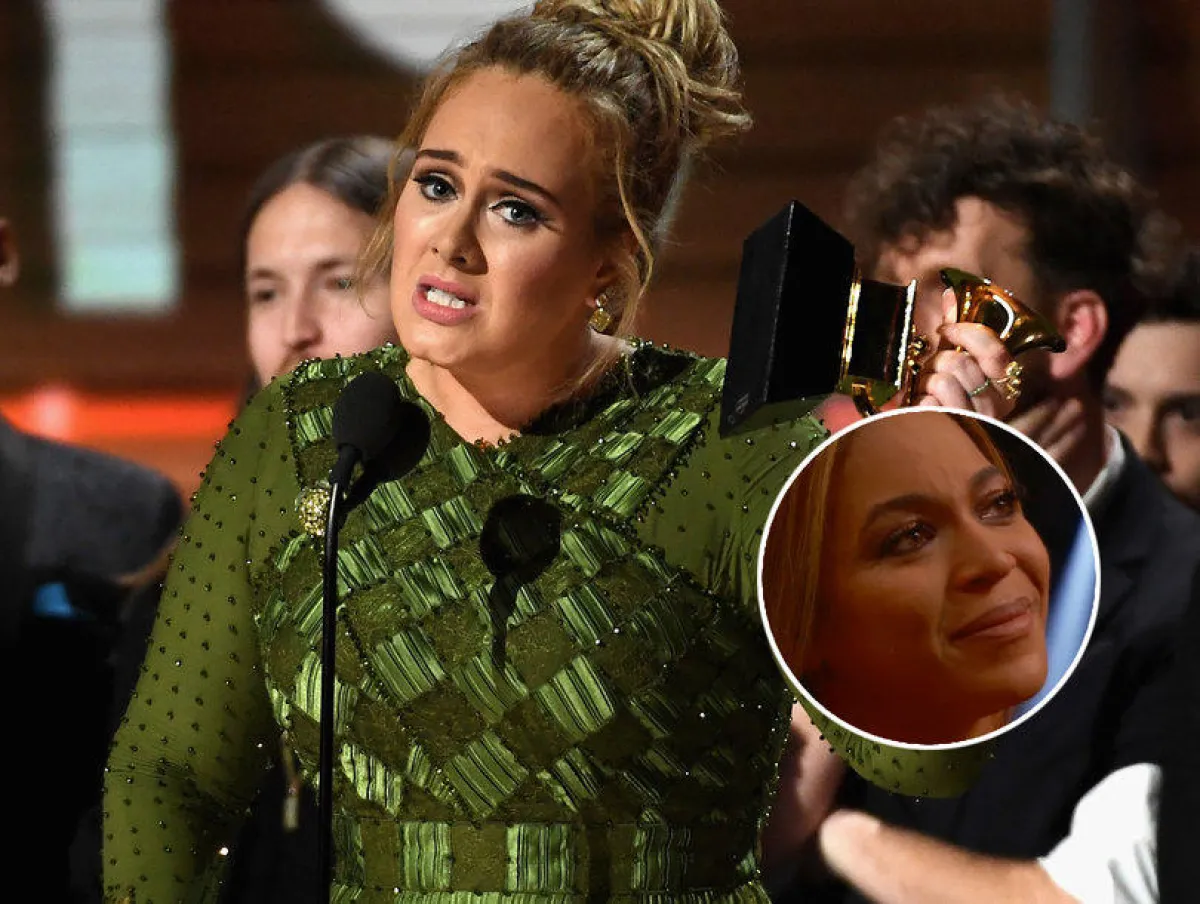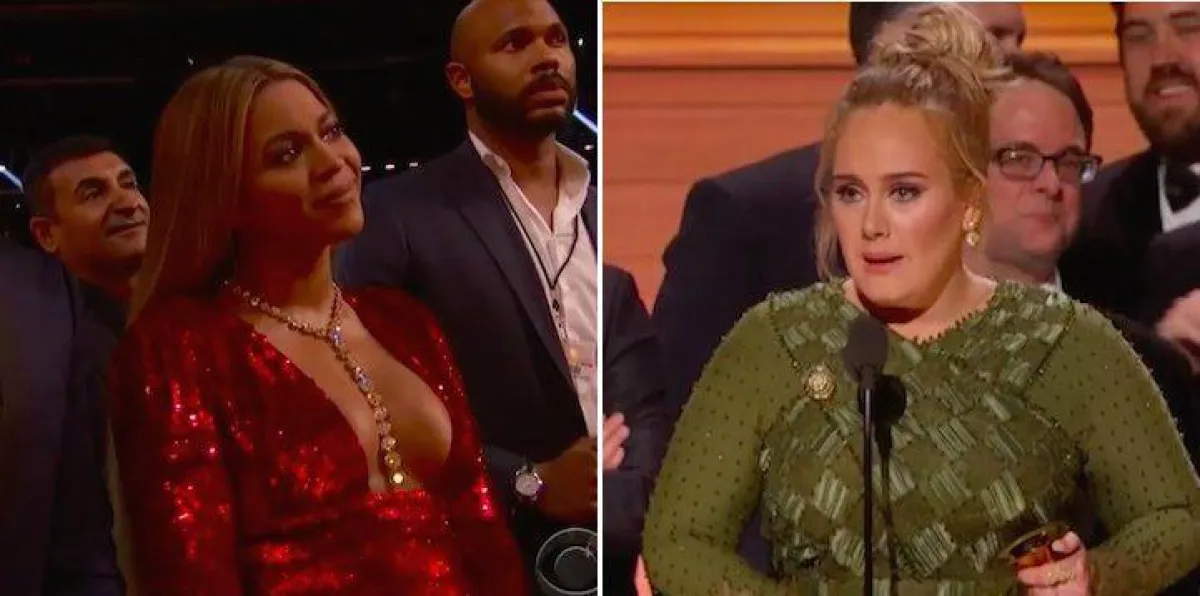 كما قالت أديل عند استلامها جائزة أفضل ألبوم لهذا العام :" لا يمكنني أن أقبل هذه الجائزة فألبوم Lemonade للنجمة بيونسه كان الأضخم والأجمل هذا العام، وقد أظهر جانب من شخصيتك لم نكن نعرفه من قبل..كلنا نعلم ذلك وكلنا نقدّر ذلك".