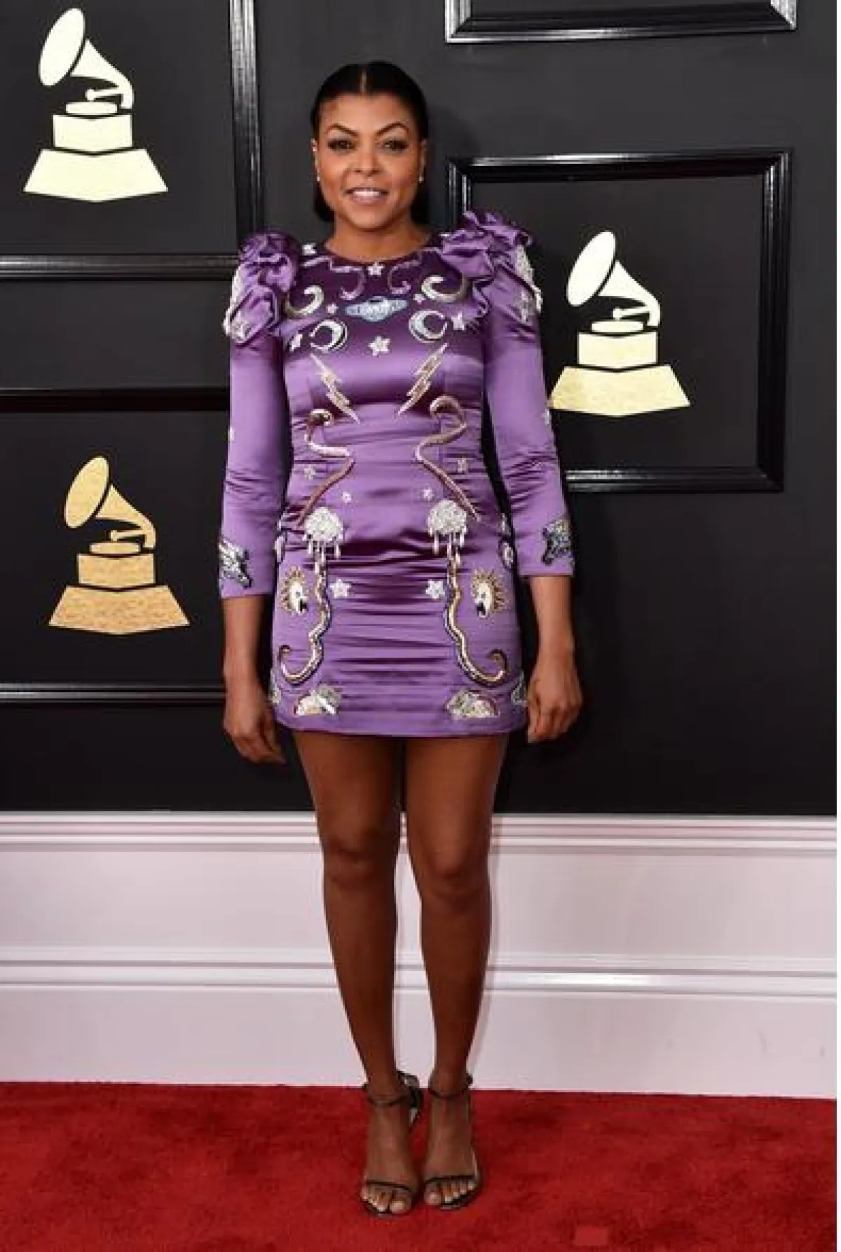 تاراجي هنسن Taraji Henson: وها هو الفرق النصفي يظهر على تسريحات النجمات حتى مع الرفعات. حيث اعتمدت هنسن الكعكة الملفوفة عند أعلى العنق، مع هذا الشكل من الفرق.
