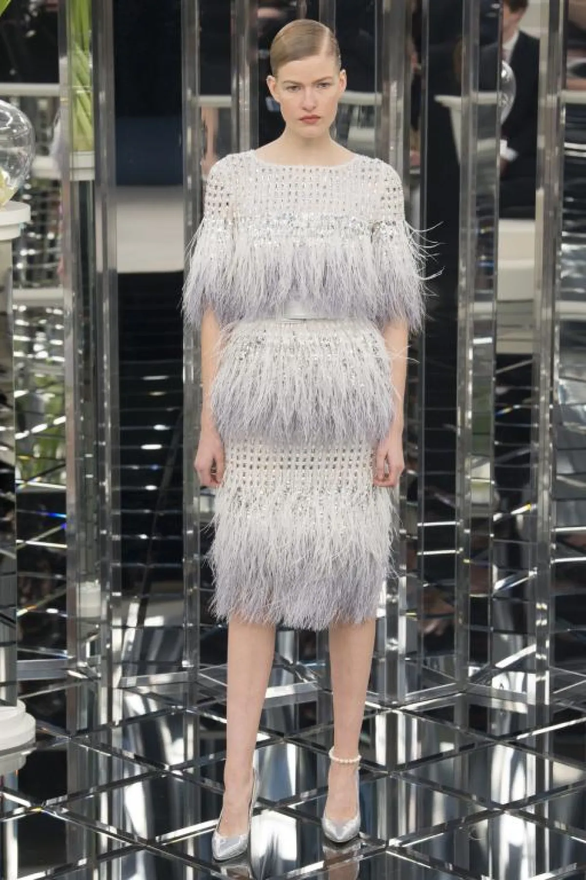 كما طغى الريش على تصاميم "فيرزاتشي أتيلييه" والتي لن يكون لها ظهور بعد الآن في أسابيع الكوتور المقبلة ، كما صرحت الدار مؤخراً، ولا ننسى تصاميم "شانيل" المليئة بتصاميم الريش، ترقص فوق منصة من المرايا العاكسة.