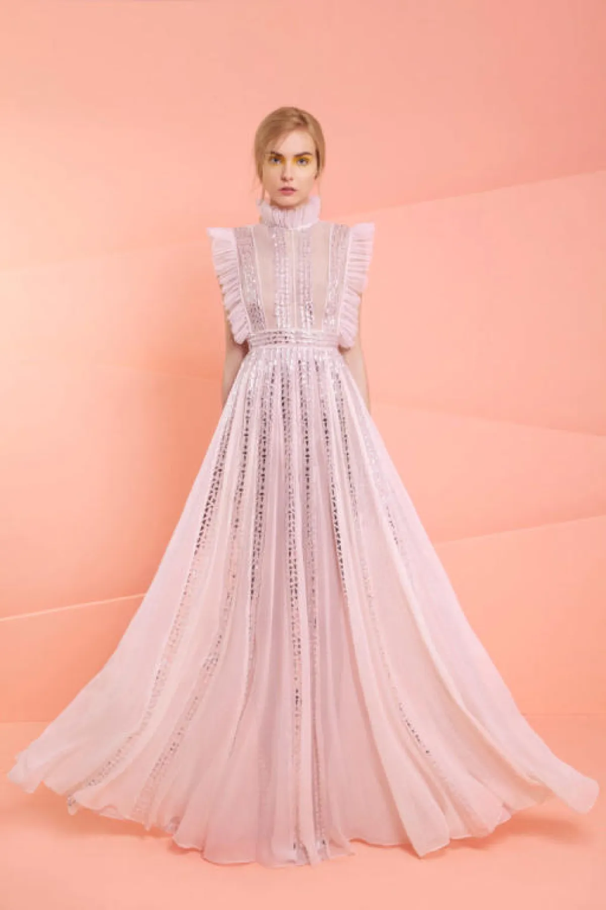 لاحظنا الإحساس الرومانسي في معظم تصاميم الكوتور لربيع ٢٠١٧، باستخدام الأقمشة المرهفة كالتول والدانتيل والشيفون، والاستعانة بتقنيّات التطريز وتطعيمها بالريش، لتعطينا إحساسا حالماً يطير بنا إلى عالم آخر، حيث الاحتفالات والرقص هي أكبر همومنا.