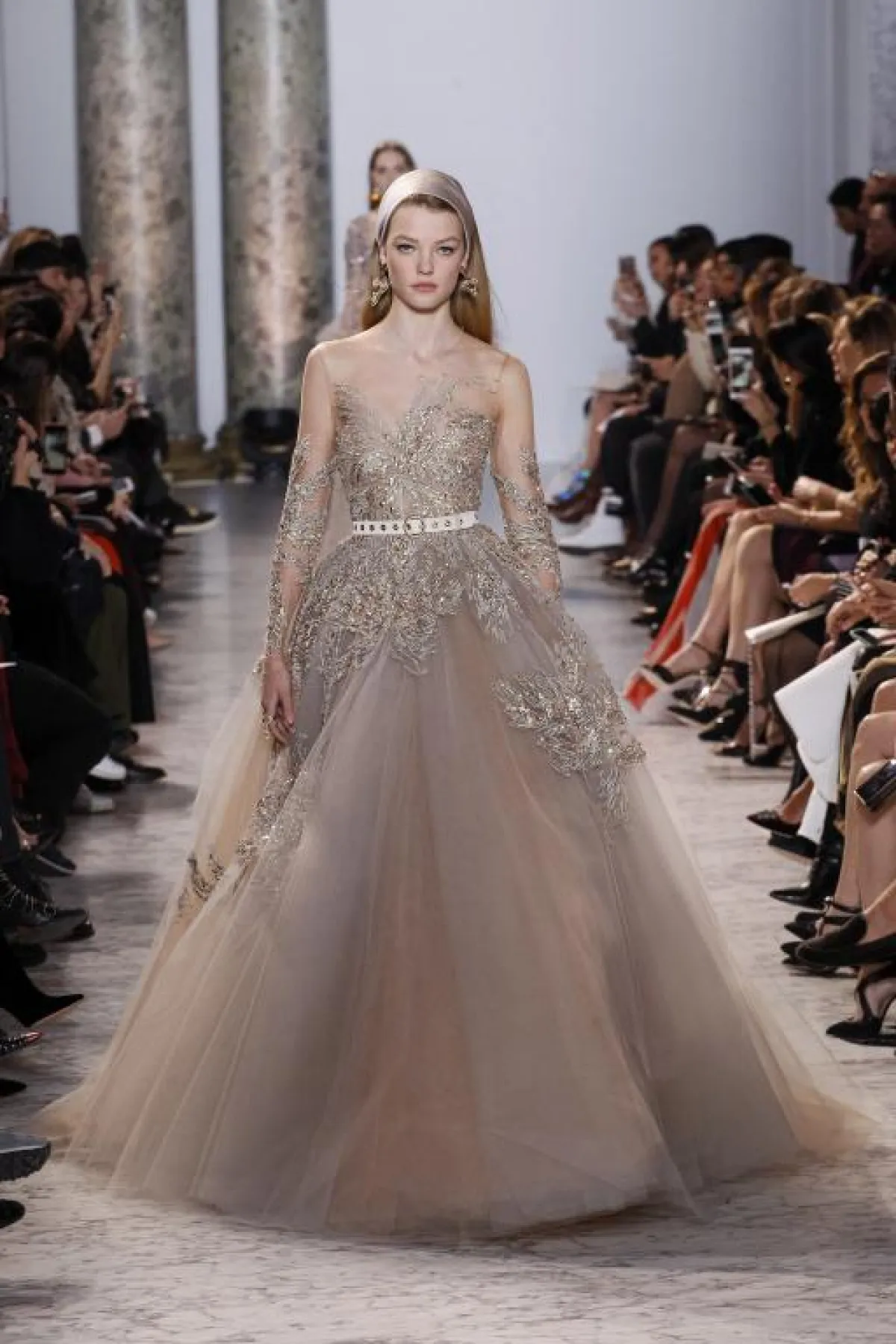 ظهر التل في عدد من العروض المميزة، أبرزها المصممة الروسية "يوليانا سيرجينكو" مروراً بحديقة "كريستيان ديور" المليئة بفساتين التول النفاشة والريش، كما في تصاميم "ايلي صعب" بالتول المذهّب، كما نرى التول بطريقة مختلفة في عرض "غيامباتسيتا فالي" يكون كالذيل من الخلف فقط، ونرى الدانتيل ظاهراً بتميّز في تصاميمه.