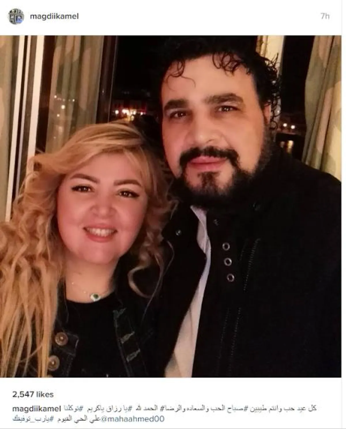 الفنان مجدي كامل نشر صورة تجمعه بزوجته الفنانة مها أحمد وعلق عليها قائلاً: "كل عيد حب وانتم طيبين".