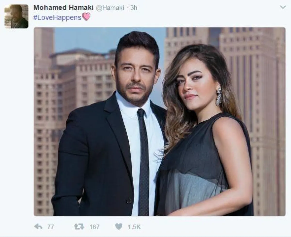 المطرب محمد حماقي احتفل بصورة خاصة جداً بمناسبة أول يوم حب له مع زوجته بعد العودة من الإنفصال، و نشر صورة له عبر حسابه على تويتر، جمعته بزوجته نهلة الحاجري، في الساعات الأولى من يوم الحب.