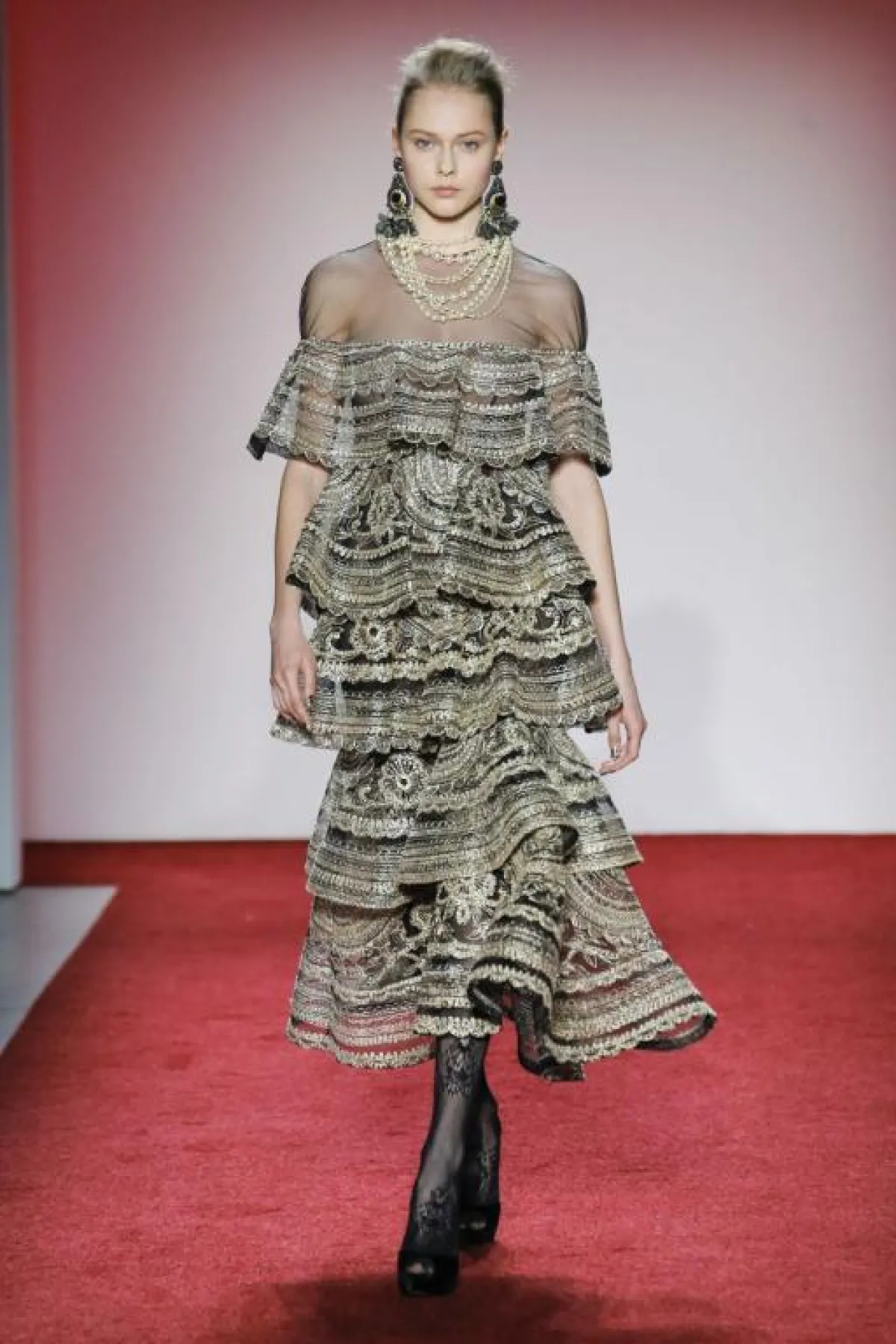 وبالفعل فقد كنا قد شاهدنا تصاميم مصنوعة من أقمشة فاخرة تنوعت بين الشيفون، والتول، والدانتيل، والأقمشة البراقة، وعلى ما يبدو أن موضة الكشكش مازالت تسيطر على تصاميم فساتين السهرة، كذلك قصة الكتف الواحد، اضافة الى تصاميم فساتين الأميرات المنفوخة، ولوحة الألوان بدت راقية الى حد كبير أيضاً عند مختلف دور الأزياء العالمية تدرجت بين الأسود طبعاً، والزيتي، والأبيض، والألوان المعدنية، والأقمشة المعرقة وخاصة بطبعات الورود.