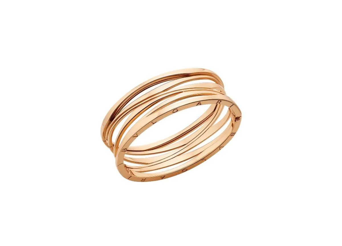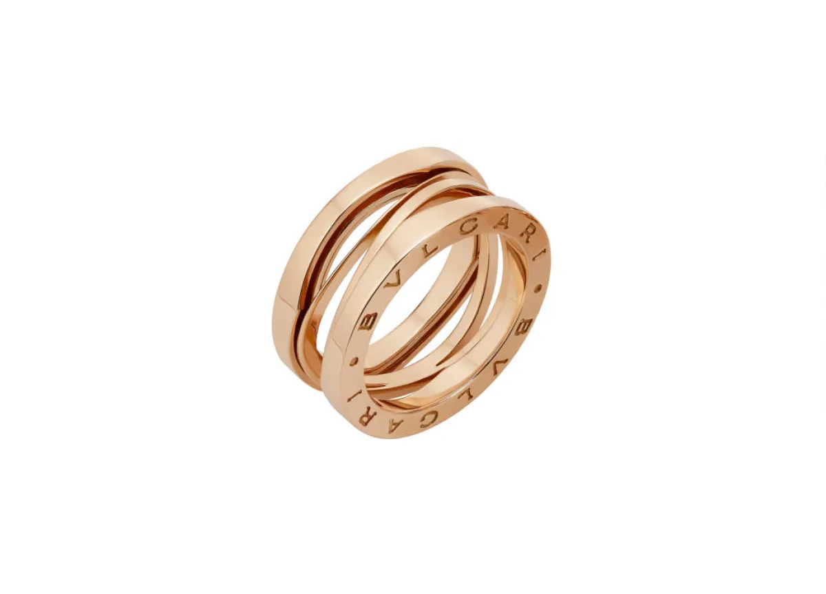 يأتي خاتم بي زيرو وان B.zero1 الجديد ليجسد صورة هذا المزيج الرائع الذي جمع بين علامتين فارقتين مذهلتين: تصاميم بولغري الهندسية الجريئة وإبداعات زها حديد الرشيقة المدهشة. وقد ذهبت زها حديد إلى "تفكيك" طوق الخاتم الدائري المحوري الأيقوني وأعادت تفسيره بأسلوب جديد. فبعد أن صار مشبوكاً بحلقتين مسطحتين نقشت عليهما دار بولغري شعارها التقليدي، اتخذ الجسم الرئيسي للخاتم شكل موجات من ذهب تتدفق بغزارة في حركة ديناميكية لا متناهية؛ فصارت بنية الخاتم بخطوطها المنحنية ورشاقتها تخلق إحساساً بالحركة في سياق تصميم يجعل المواد الجامدة الصمّاء التي استخدمت فيه تبدو، وبشكل عفوي، وكأنها تعج بالحيوية والإثارة.