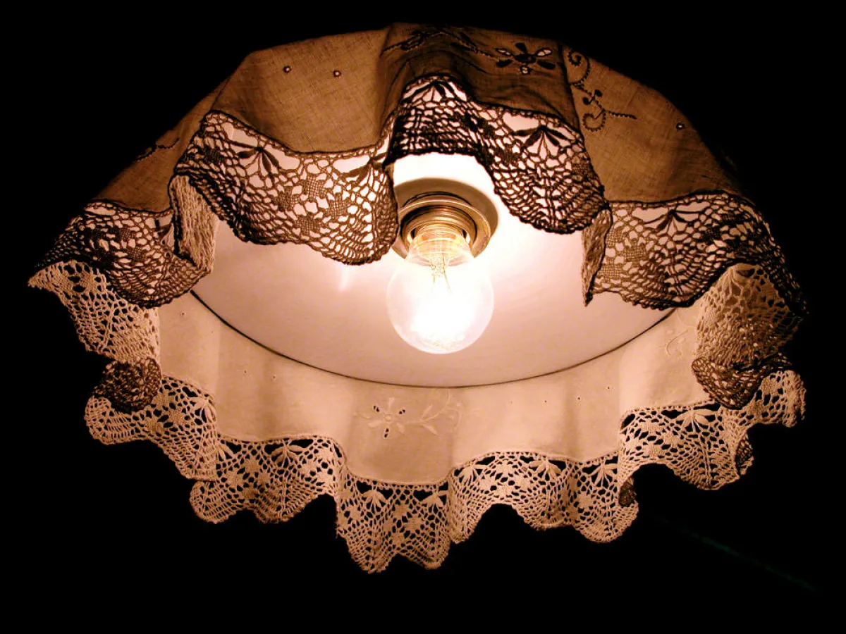 | تُثبّت قطعة "الدانتيل" على أطراف اللمبة ما ينعكس بصورة جذّابة على الجدران، عند إضاءتها.
