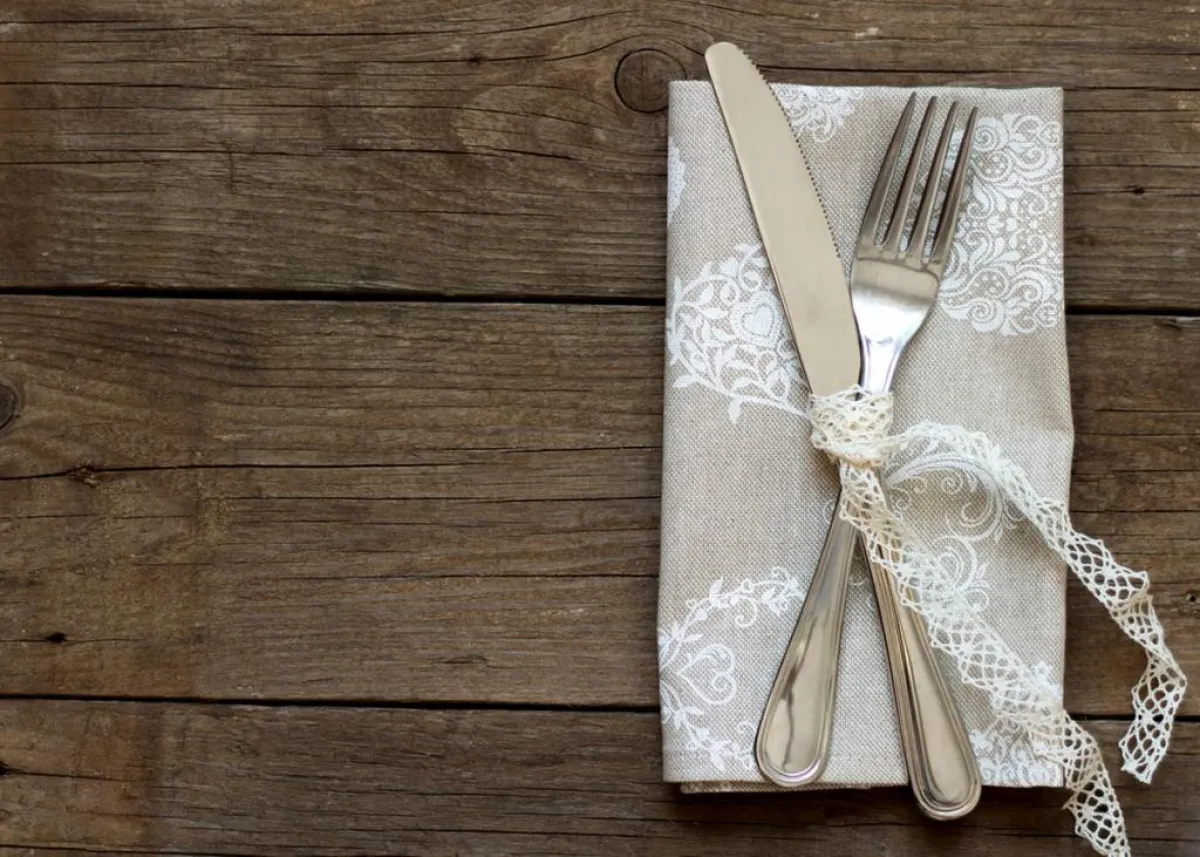 من الممكن إدخال "الدانتيل" إلى أدوات المائدة، كعقد القماش المذكور على الشوك والسكاكين والأكواب
