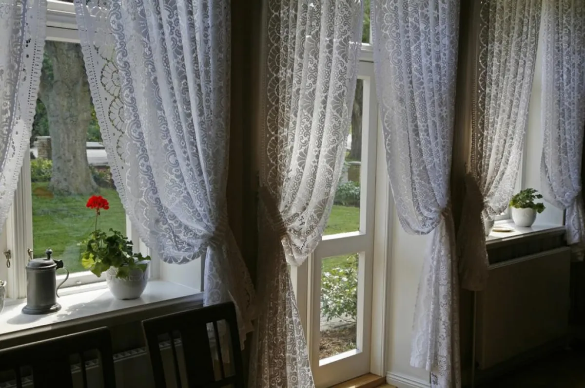 | يمكن اختيار الستارة المزينة بـ"الدانتيل" على كامل مساحتها، أو تلك المصنوعة من القماش السادة ليدخل "الدانتيل" في الربطة أو الأطراف السفلى.