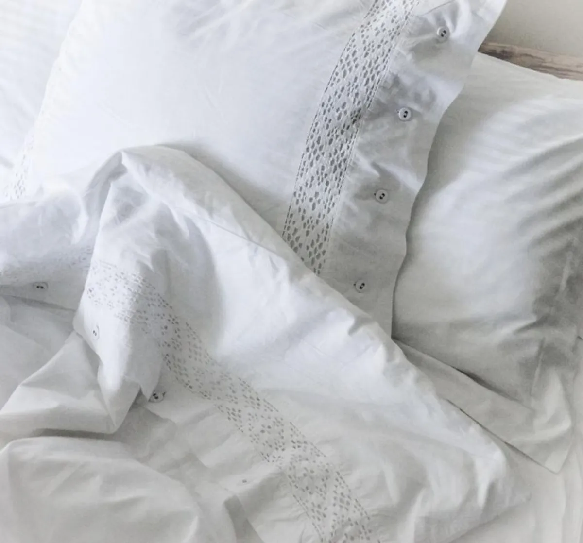 | في غرف النوم، يُستخدم "الدانتيل" على المخدّات والشراشف وأغطية الأسرّة.
