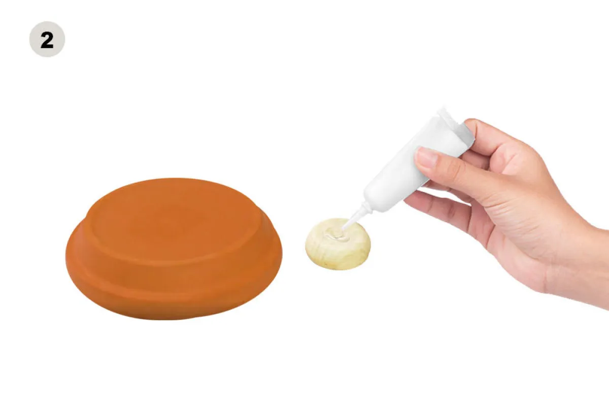 1. تلصق الكرة الخشب على طبق، أسفل حوض النبات، من الجهة الخلفية.