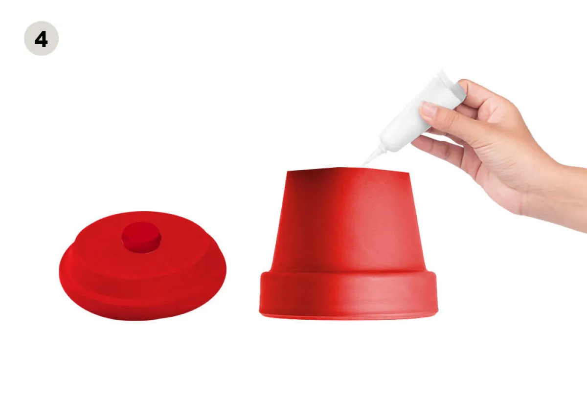 | الأدوات المطلوبة: حوض للنبات ولاصق ووعاء وكرة صغيرة مصنوعة من الخشب.