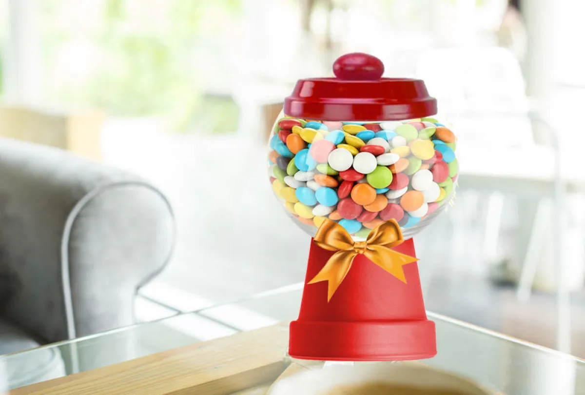 4. تُعبأ في داخل الوعاء، قطع الحلوى الملوّنة.