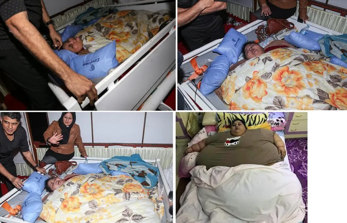 إيمان أحمد مصرية وصل وزنها 500 كجم وتخضع لعملية جراحية وكورس علاج كامل فى الهند لتخفيض الوزن.