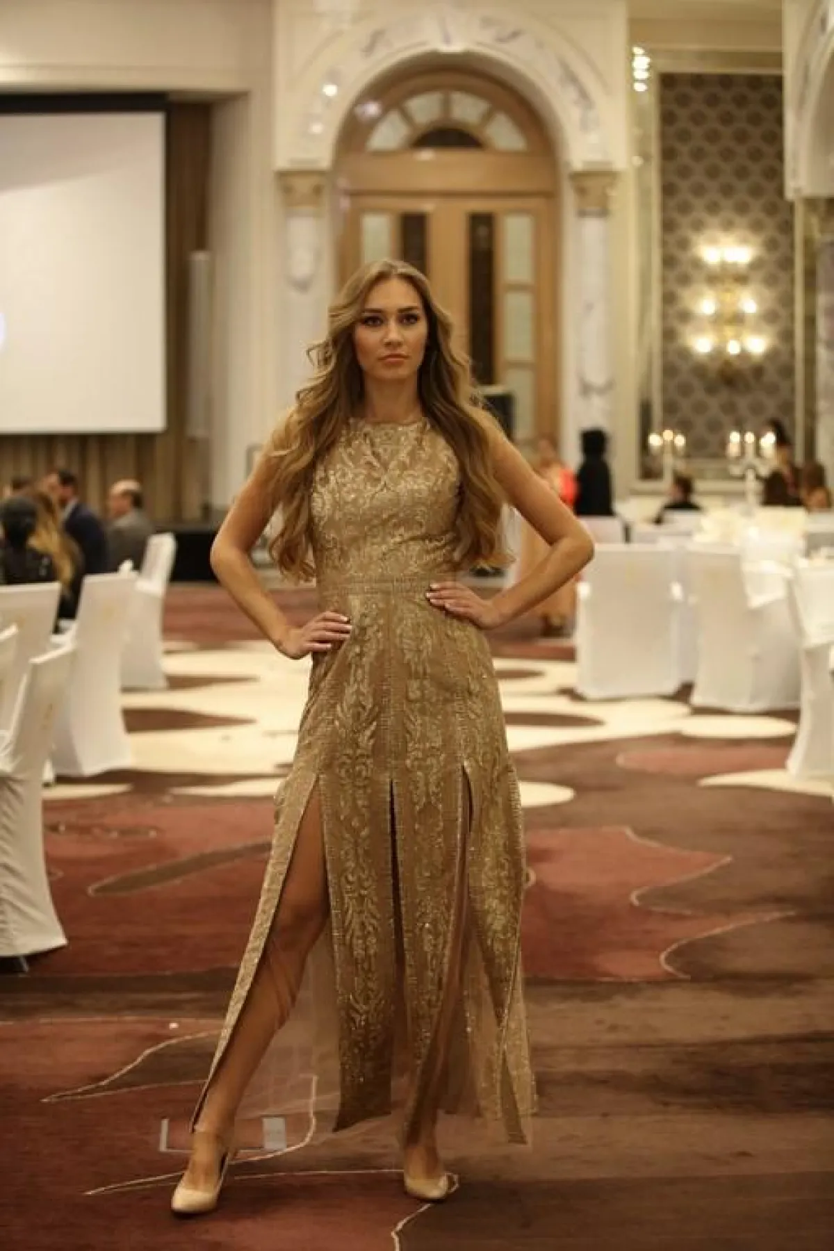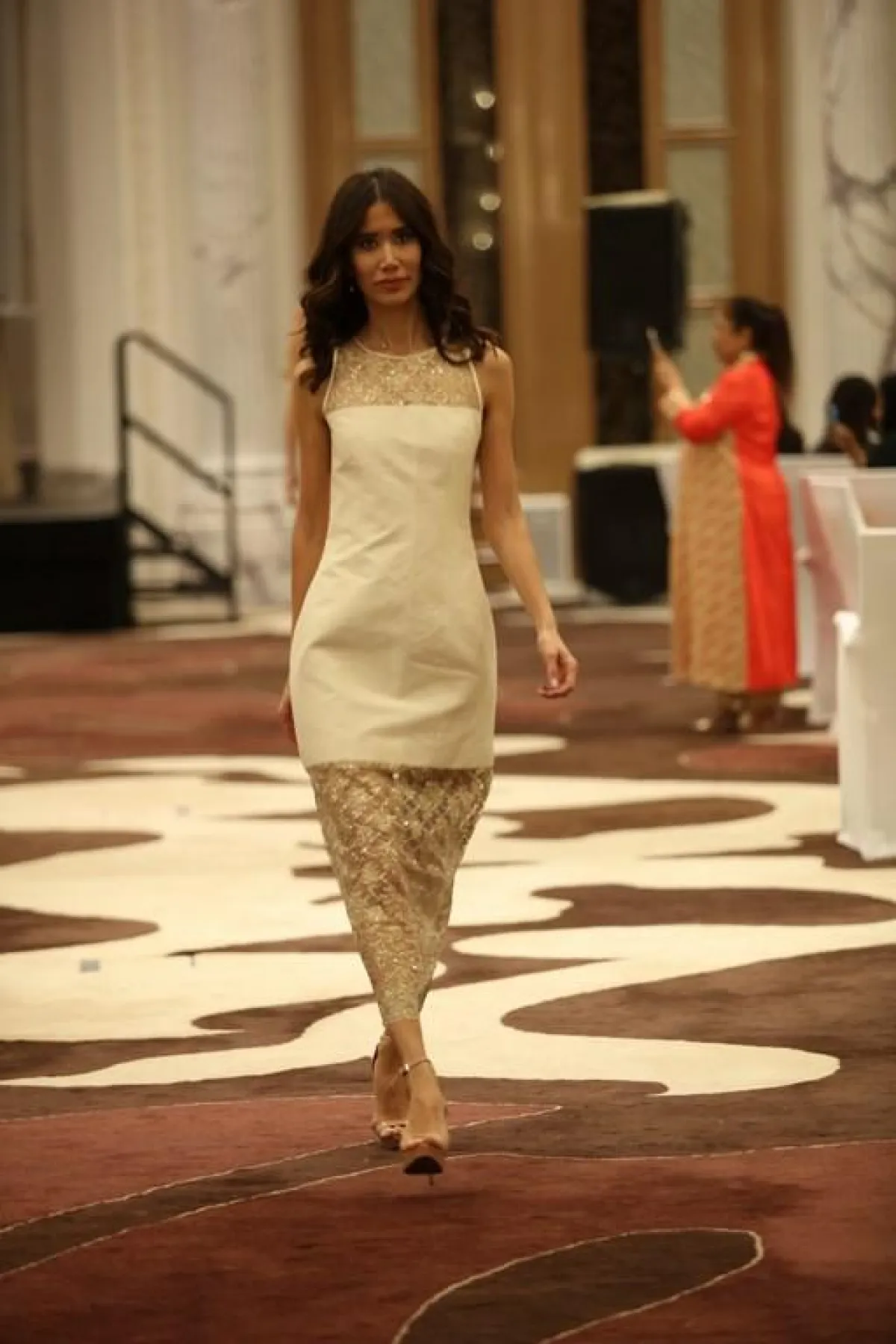 تميّزت الفساتين بالألوان الحياديّة من درجات الأسود والازرق الداكن والبيج، بالإضافة لألوان الميتاليك من اللون البرونزي والذهبي، عكست أنوثةَ المرأة بخفّة عالية.
