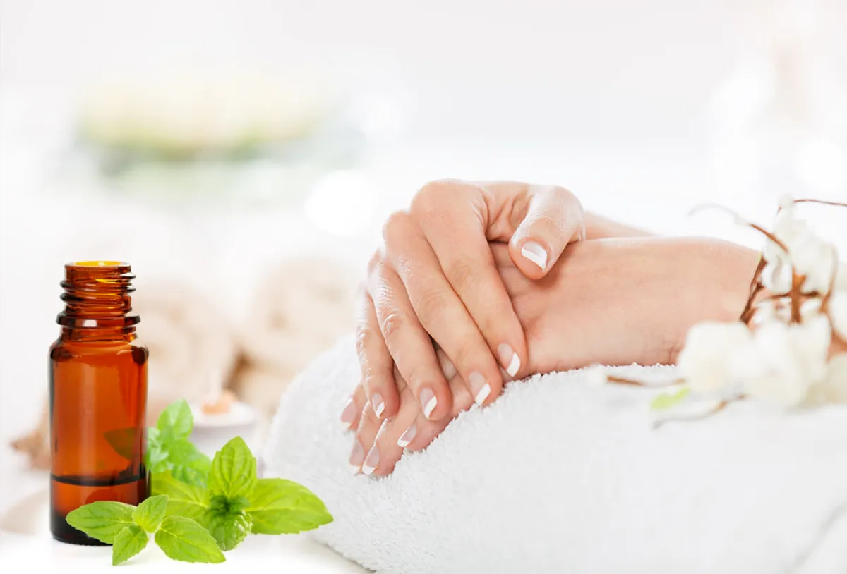5.لأظافر لامعة: بما أنه من المواد المضادة للجراثيم، فهو يحمي الأظافر من ظهور الفطريات، ويجعلها لامعة ومتألقة، لذا يمكنكِ وضع زيت النعناع على أظافركِ قبل النوم، ثم ارتدي الجوارب، وستحصلين على أظافر لامعة في الصباح.