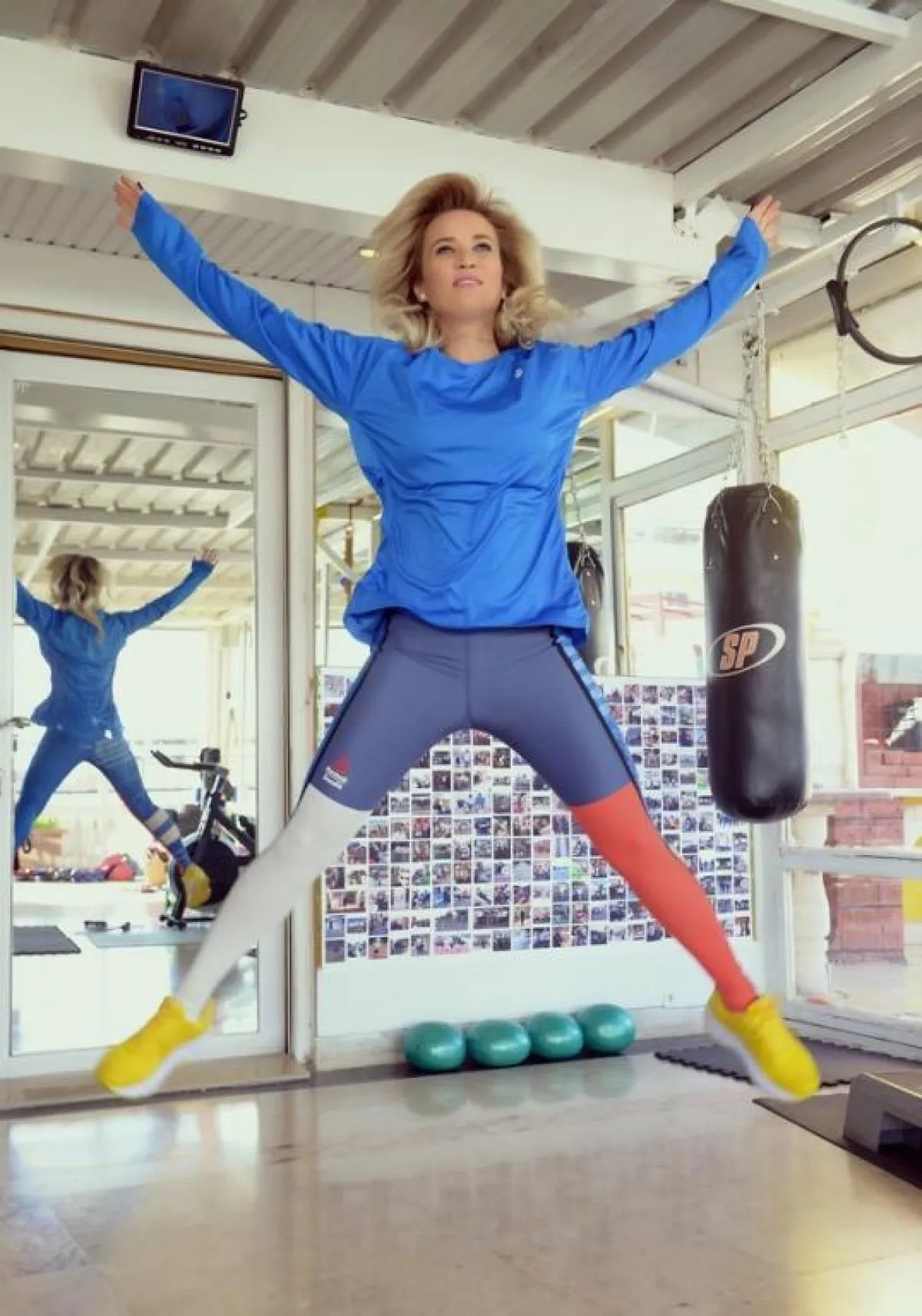 2. القفز الطاعن (جامب لانجز): تُمارس الحركة انطلاقًا من وضعيّة الوقوف المستقيم، إلى القفز مع ثني الركبة اليمنى. وتُكرّر الحركة باستخدام الركبة اليسرى.