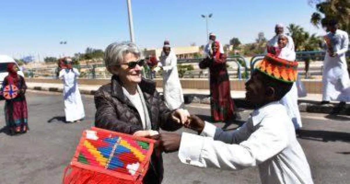 فاجأت ايرينا بوكوفا، مدير عام الأمم المتحدة للتربية والعلوم والثقافة "اليونسكو"، مستقبليها بمدينة أسوان المصرية الأثرية بالإنضمام لفرقة قصر ثقافة كركر للطلائع، ومشاركتهم الرقص على أنغام الأغاني الشعبية النوبي.