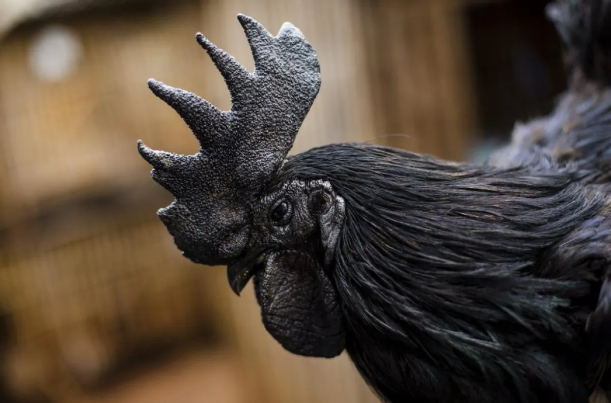 أكثر ألوان الدّجاج في العالم هو الأبيض أو البني أو ما بينهما، وقد يصادف رؤية ديك له بعض الريش أسود اللون.. ولكن هناك فصيلة نادرة من الدّجاج والدّيكة سوداء اللون تماماً بريشها ومناقيرها وجلدها ولحمها وعظامها وبيضها وكتاكيتها وألسنتها وكل شيء فيها من الخارج ومن الدّاخل، وحتى قلوبها ولكن باستثناء دمها.