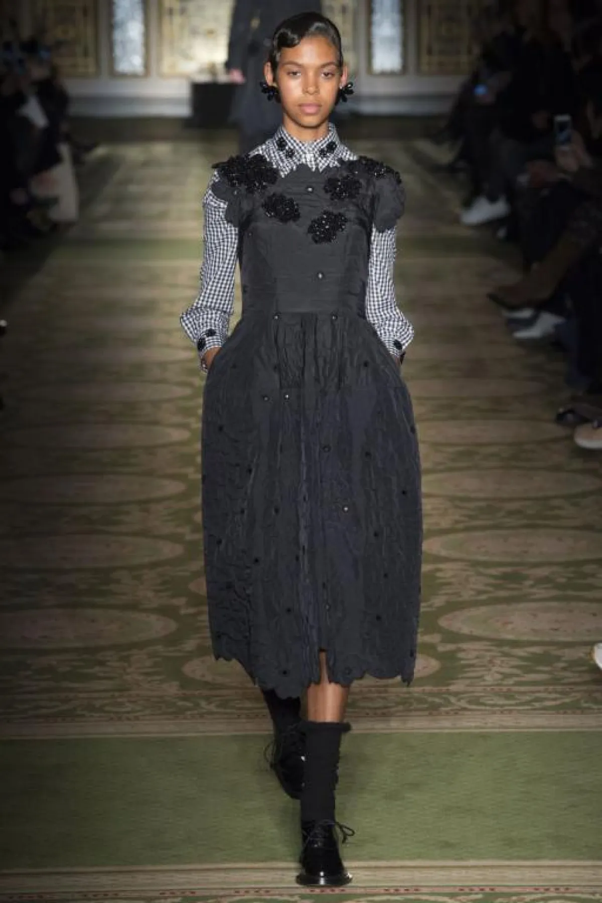 وفي نفس اليوم تابعنا عرض أزياء دار "سيمون روشا" Simone Roca وقد بدت مجموعة الدار غنية، مستوحاة من النمط العسكري، حيث شاهدنا في بداية العرض السترات العسكرية باللون الزيتي مع التنانير المتوسطة الطول، كما شاهدنا التصاميم التي زينتها طبعات الورود المتفاوتة الأحجام والألوان، كما سيطر على المجموعة جو درامتيكي غامض، وبدت الاكسسوارت لافتة ولاسيما الأحذية المتوسطة الارتفاع، وأوشحة الفرو، وشنط اليد الجلدية