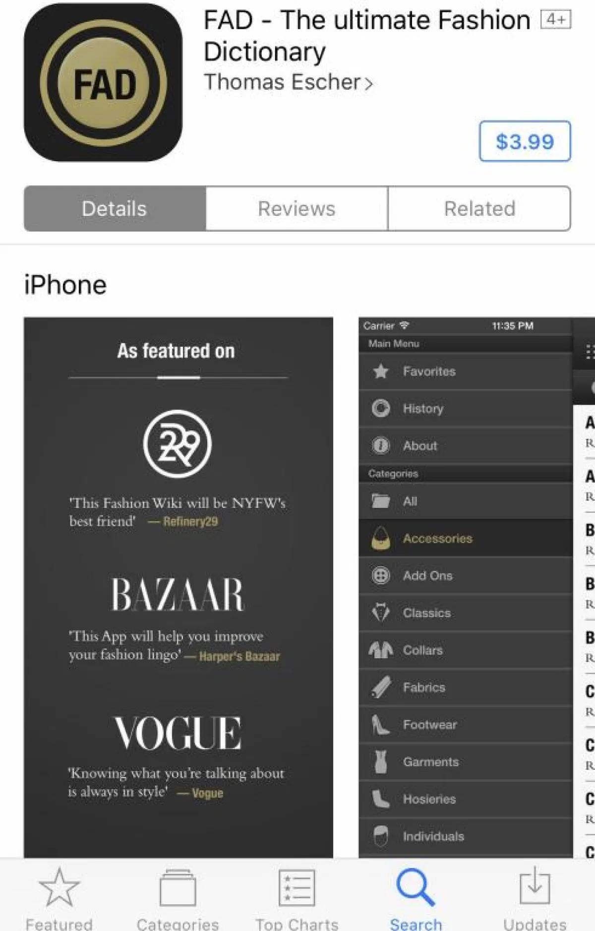 هذا التطبيق يمنحك قاموساً يفسّر لك المفردات الخاصّة بالموضة، من ماركات إلى متاجر وأقمشة وخياطة.