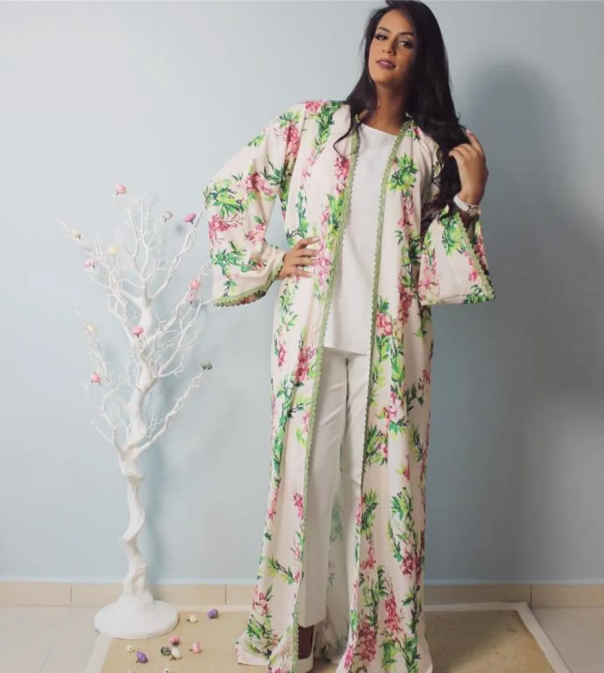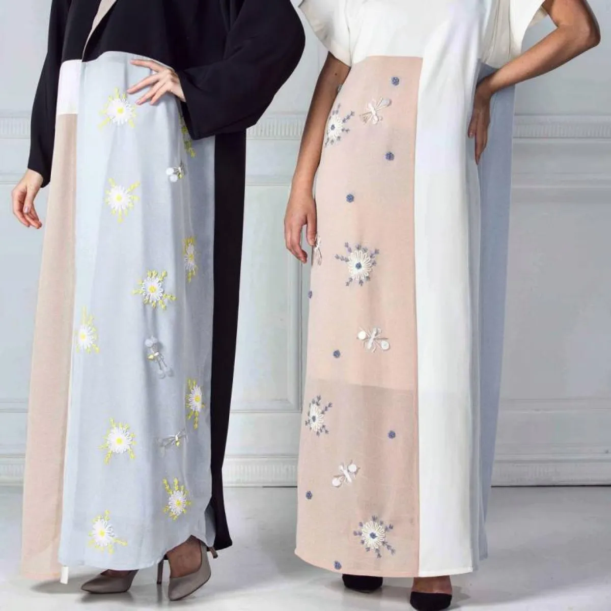 وبما أنّ الجلابيات والعبايات أصبحت من القطع المميّزة عند معظم السيدات، صار من الضروري تقديمُها بألوان متعدّدة بعيداً عن اللون الأسود التقليدي، وتصاميم مختلفة، لتناسبَ أذواقَ الجميع. ولذلك فقد قدّمت دور الأزياء عبايات وجلابيات بألوانٍ ربيعيةٍ هادئة، لتكون إطلالاتُكِ فيها هذا الربيع من وحي الأجواء. فرأينا جلابيّة من قُماش الساتان باللون الزهري الفاتح بأكمام عريضة. كما تميّزت بعضُ العبايات بالطبعات والرسومات، فرأينا عبايةً باللون البيح مزيّنة بطبعات ورود باللونين الأخضر والزهري، بالإضافة إلى بعض العبايات التي تميّزت بالتطريز الجذاب والأنيق، والذي أضفى عليها جاذبية خاصة، مثل عباية باللون الوردي مطزة بتطريز ورود على أحد جوانبها. وقد تميّزت الألوان المستخدَمة في العبايات بالهدوء، مثل الوردي الفاتح والزهري والبيج، والأزرق السماوي والأبيض وغيرها، كما تميّزت التصاميمُ بالتنوع، فبعضُها كان كلاسيكيّاً تقليديّاً، وبعضها الأخر بأكمام عريضة، وغيرها تميّزت بوجود حزامٍ عند الخصر.