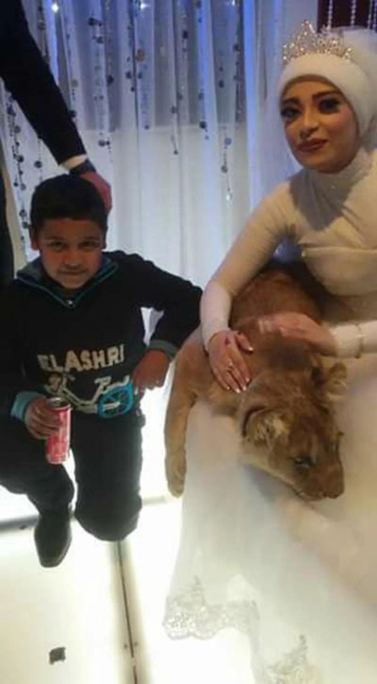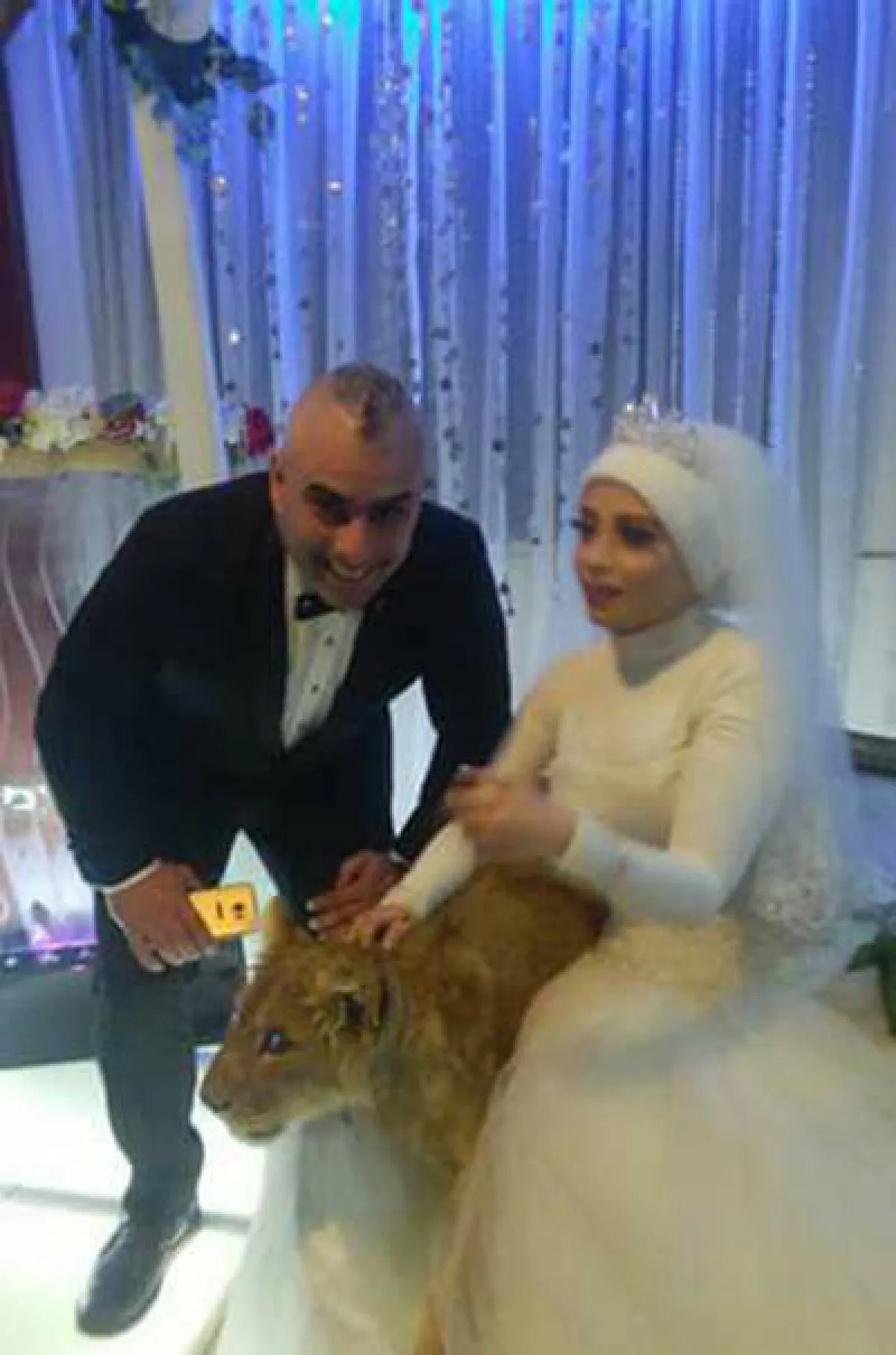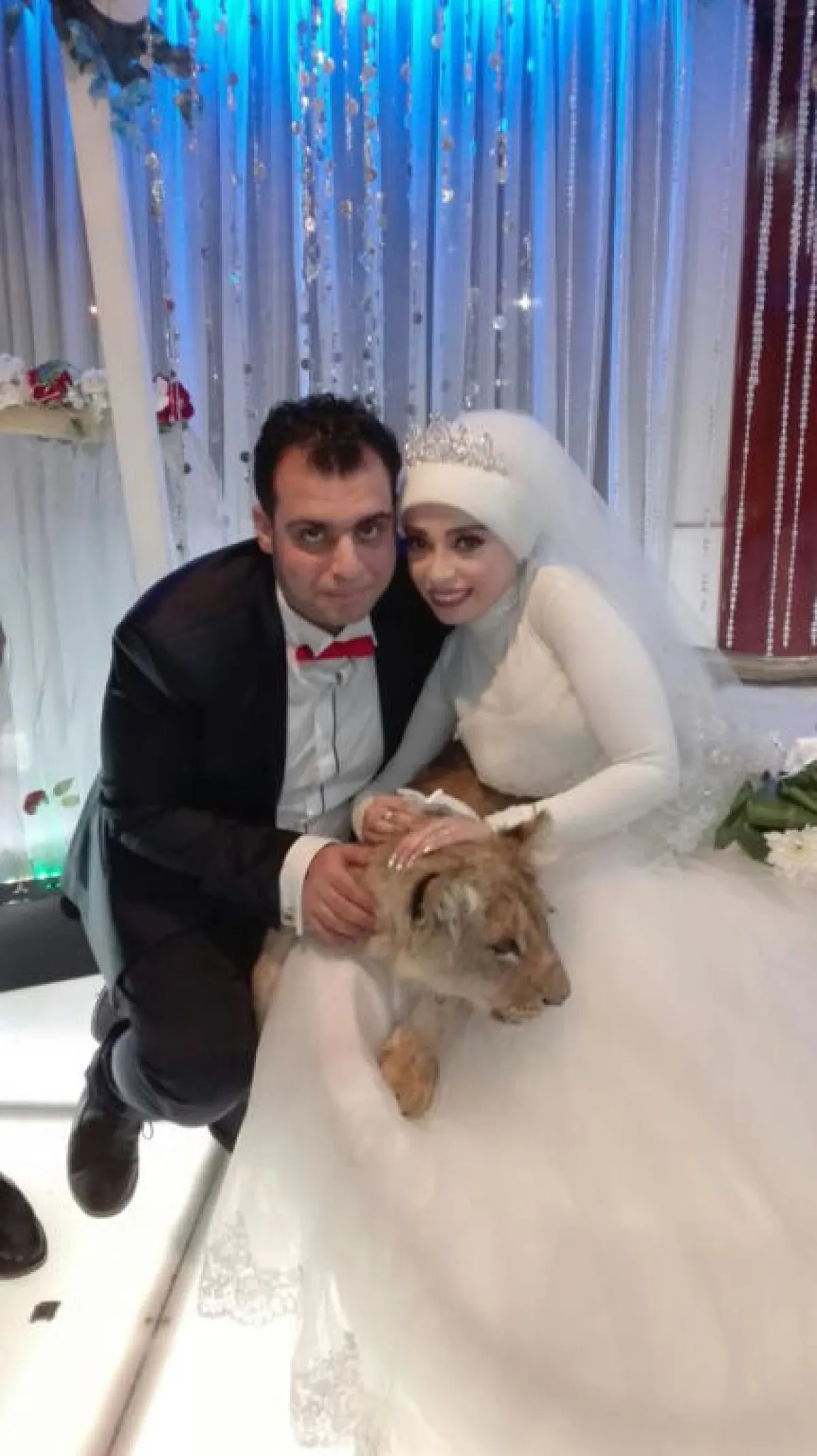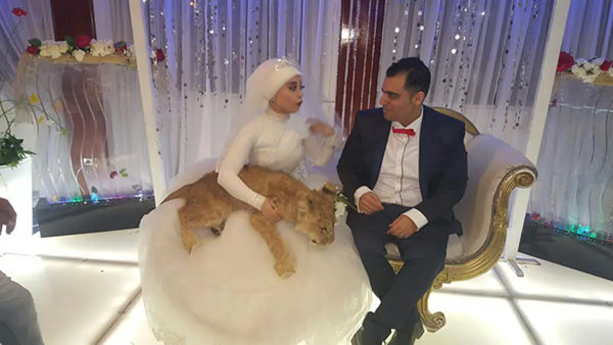 بالصور.. عروس مصرية تصطحب أسداً في حفل زفافها