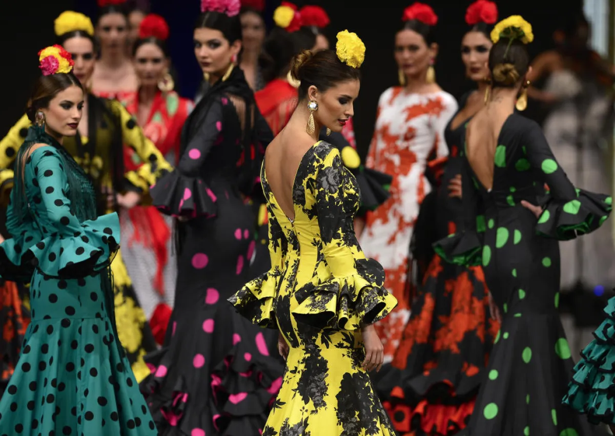 افتتح مهرجان أزياء «الفلامنكو» الدولي في مدينة إشبيليّة الإسبانية، مؤخرًا، حيث اختالت العارضات بتصاميم من إبداع مصممين مثل كريستينا غارسيا، سيرجيو فيدال، لينا، وغيرهم، وبدون كالفراشات الملونة على منصة العرض؛ إذ امتازت التصاميم المبتكرة بالرشاقة والأنوثة والكشاكش البديعة زاهية الألوان، التي تعكس التراث الإسباني التقليدي.