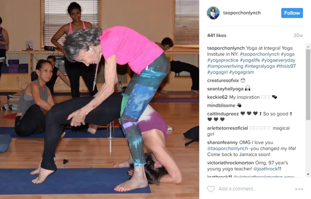 تجاوزت العقد العاشر ومازال الأمل والرغبة في استمرار وفرحة الحياة كامنًا وعالقًا في كيان بداخلك.. مقولة أثبتتها الهندية «تاو بروشون لينش» العجوز ذات الـ98 عامًا، بعدما حصلت على لقب أقدم مدربة في العالم من قبل موسوعة جينيس، حيث تحرص تاو على الاستيقاظ في الخامسة صباحًا لتدريب اليوجا منذ أكثر من 75 عامًا، وتحولت لمصدر إلهام للجميع بحسابها على إنستجرام.