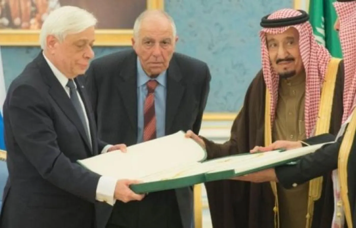 وعقب جلسة المباحثات، قدم خادم الحرمين الشريفين الملك سلمان بن عبدالعزيز آل سعود - حفظه الله - قلادة الملك عبدالعزيز للرئيس بروكوبيوس بافلوبولوس الذي سلم الملك أرفع وسام في الجمهورية اليونانية.