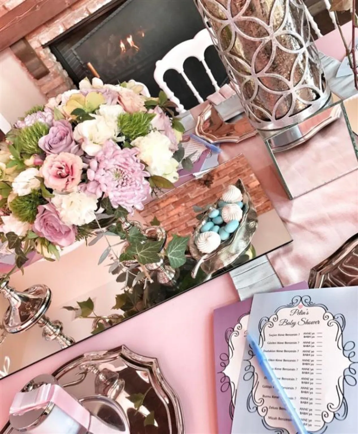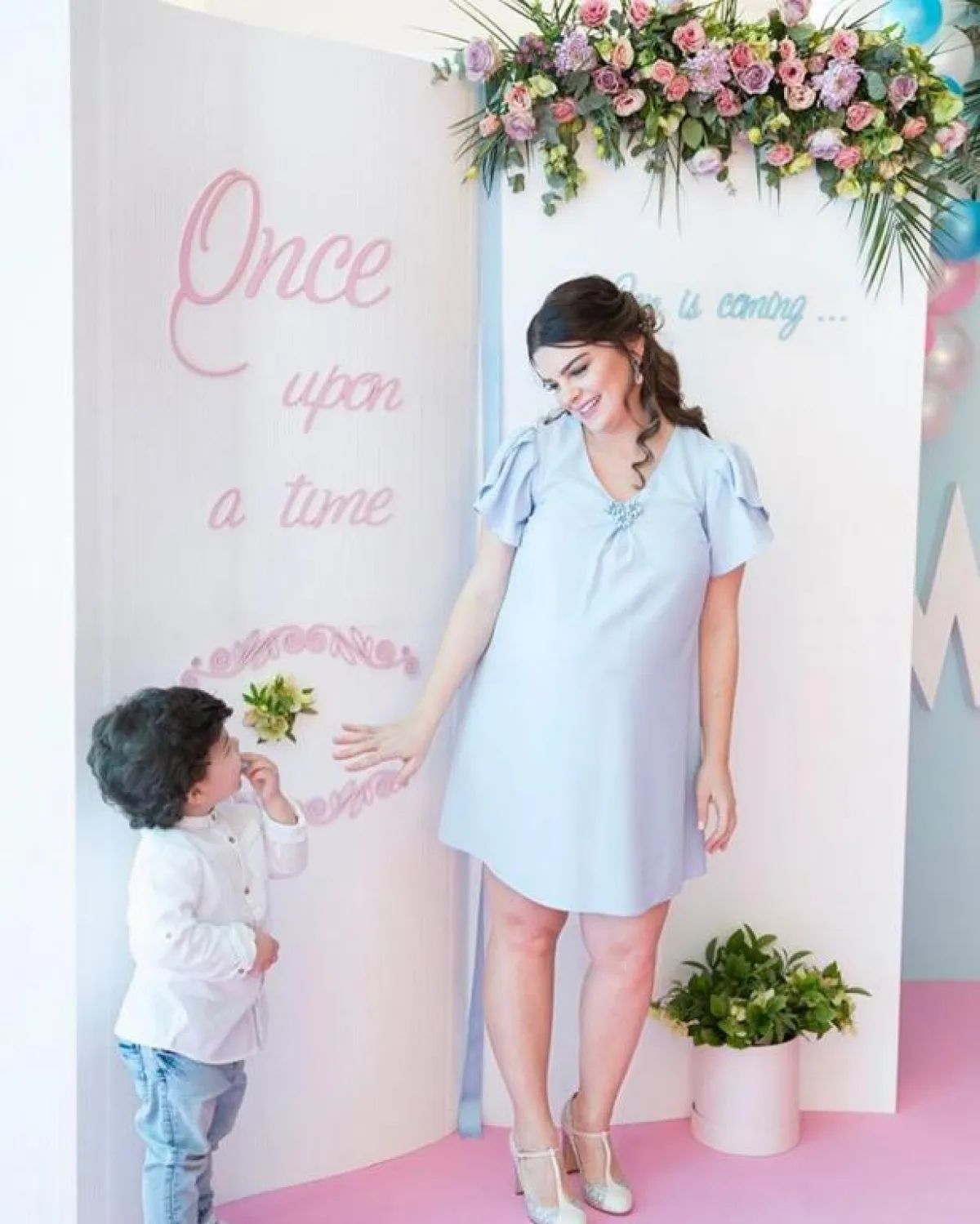 وكانت حفل الحمام الذي أقامته لمولودها الأول "علي ديمير" مميزاً باللون الوردي، حيث ارتدت فستاناً وردياً يومها.