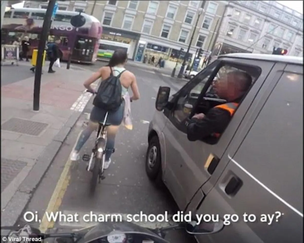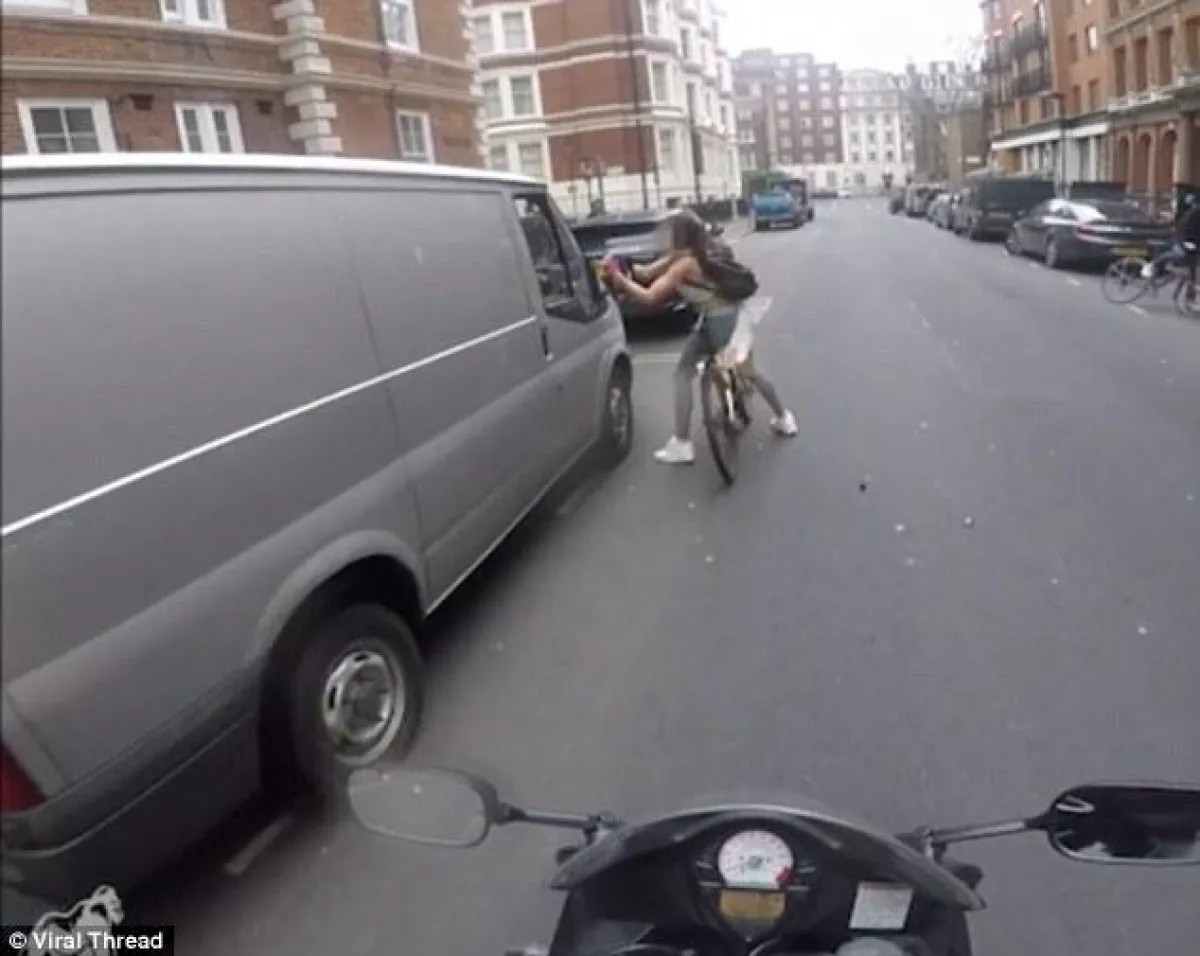 نشرت صحيفة ديلي ميل البريطانية الفيديو الذي تم تصويره من خلال كاميرا معلقة فى خوذة متسابق يقود دراجة بخارية كان يسير خلف الفتاة، وبدأ المشهد بتوقف الإشارة فجأة، وإذا بسائق الشاحنة يحاول التحرش بالفتاة التي تقف على دراجتها بجانبه، ويسألها عن رقم هاتفها، وعندما حاولت إثنائه تطاول أكثر وسألها سؤالاً خادشاً يتعلق بالدورة الشهرية «فترة الحيض» ومد يده إلى جسدها ليتحرش بها، الأمر الذي استفز الفتاة للغاية، ولكن الإشارة كانت قد فتحت، وفر صاحب السيارة وزميله الذي كان بجانبه بالشاحنة، إلا أن الفتاة أصرت على الانتقام وأخذت تطارد السيارة فى شوارع لندن وعندما توقفت قامت بكسر المرآة الجانبية للسيارة قائلة: «هذا ما تستحقه».
