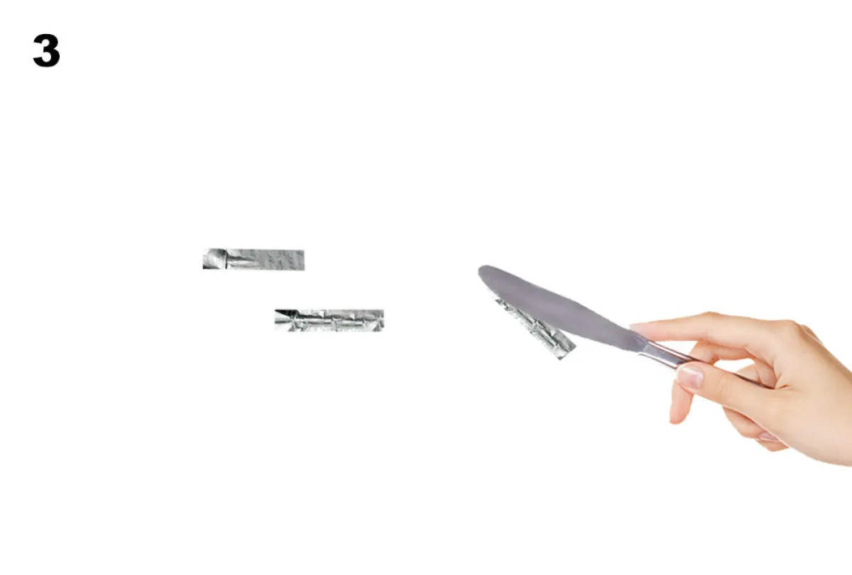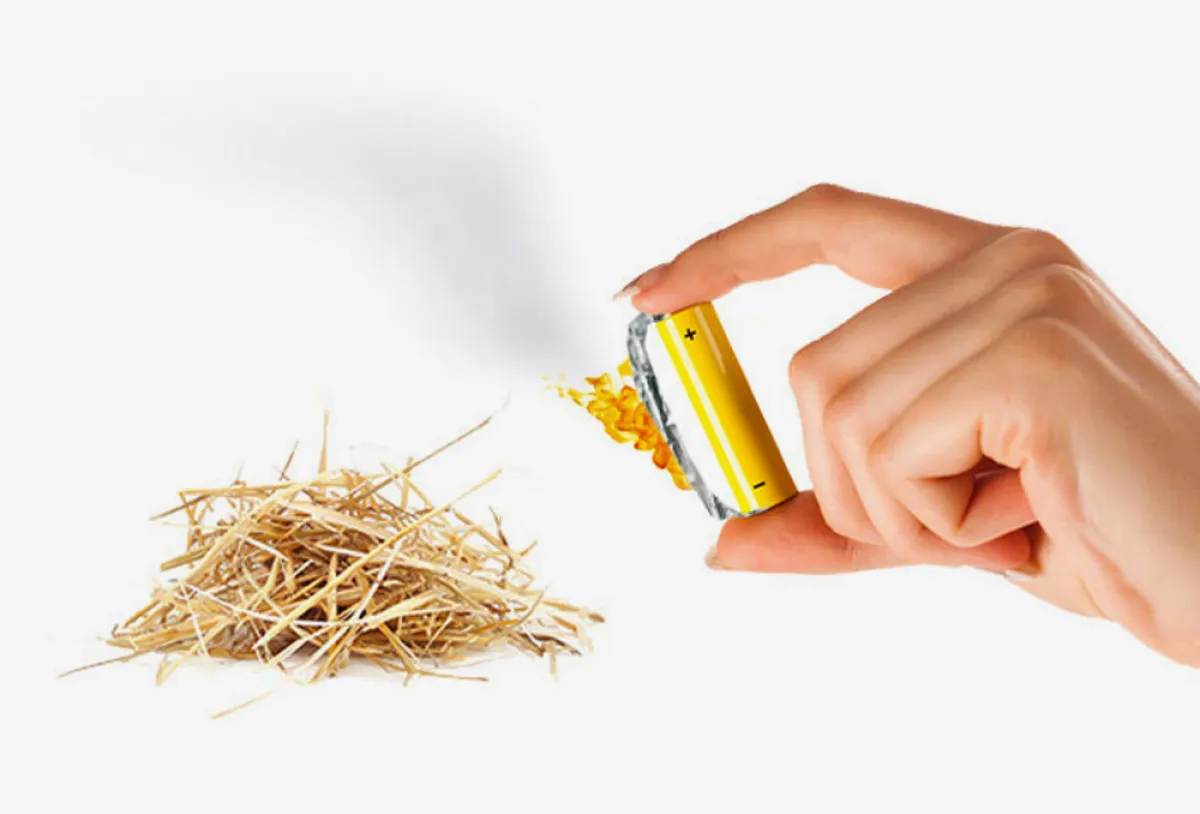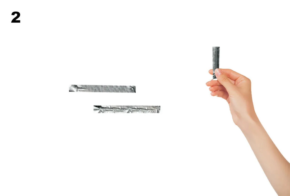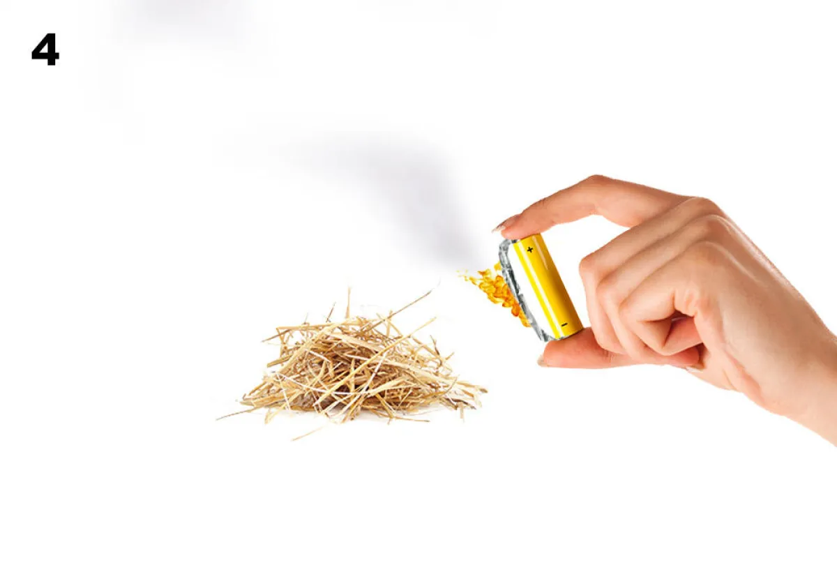 | تعلق أطراف الورقة المقطوعة أعلى وأسفل البطارية لتحترق بسهولة، وتُستعمل عوضًا عن أعواد الكبريت.