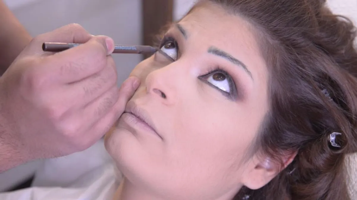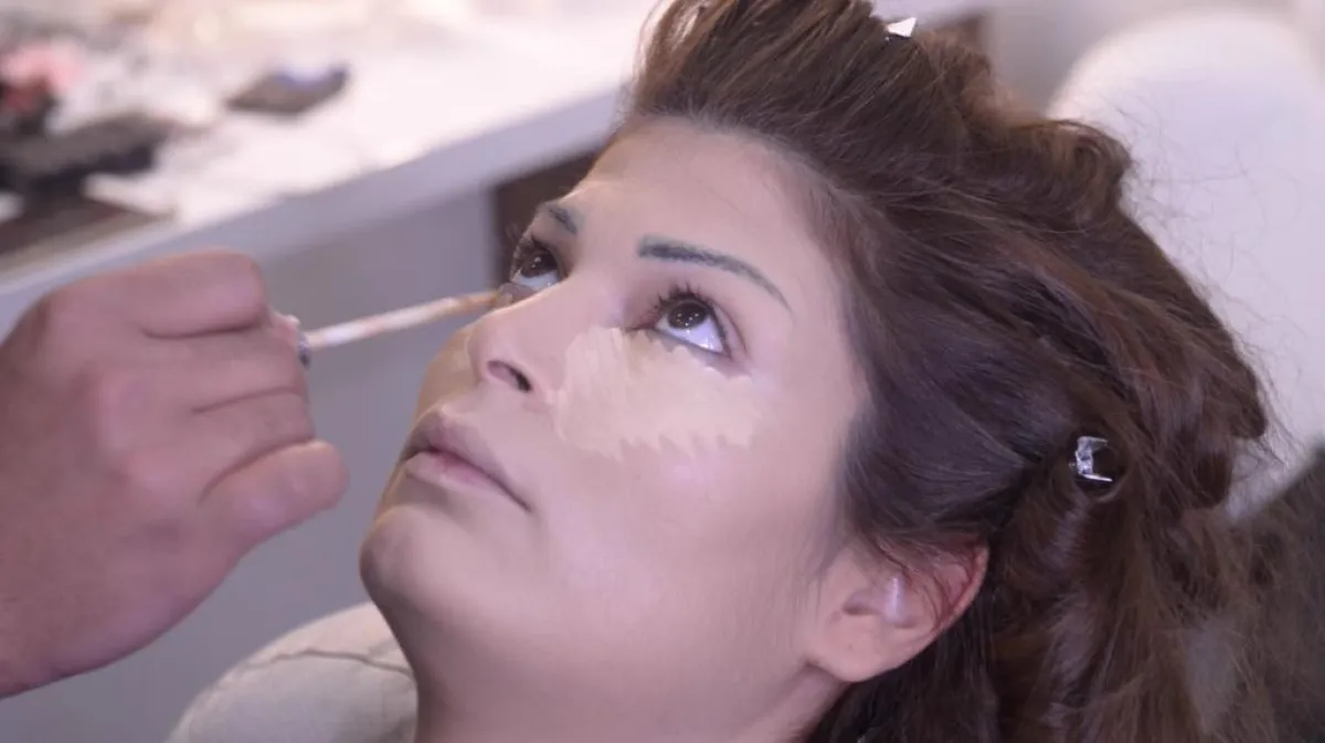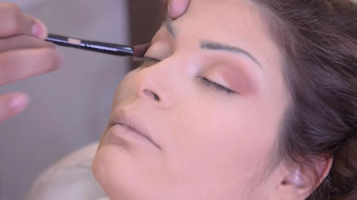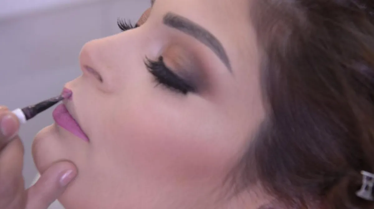 *طبّقَ خبيرُ التجميل أحمد أحمد الألوانَ الترابيّةَ والمكياج السموكي لعروس "سيدتي نت"، واختار أحمر الشفاه الزهري.