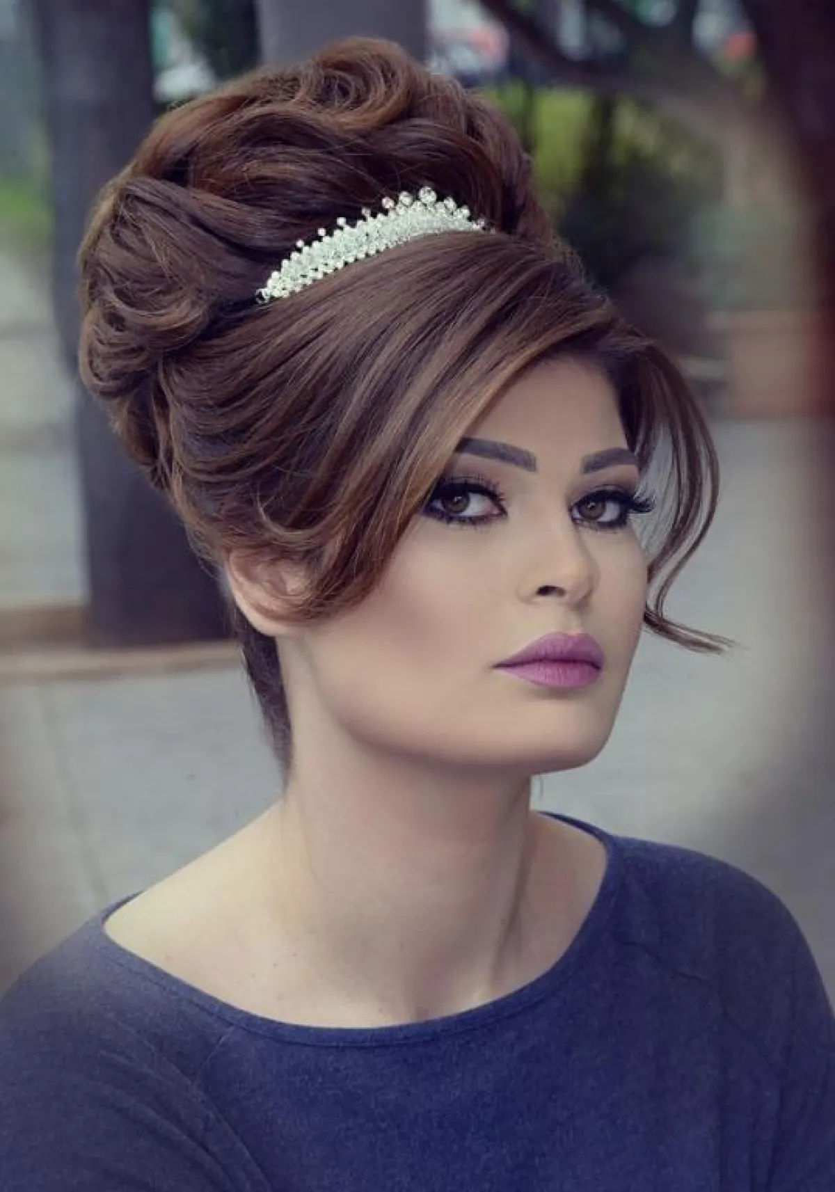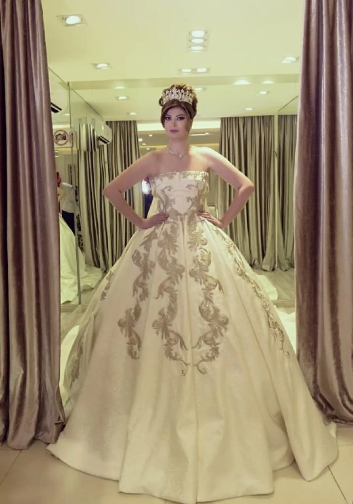 وأنهى التسريحةَ بتاجٍ ذهبيّ يَليق بفستان العروس.