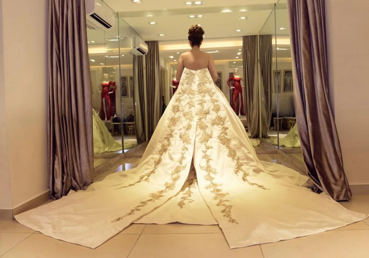 يبدو أنّ الفساتين ذاتَ الألوان الجريئة والبعيدة عن التقليديّة، رائجة خلال موسم ربيع وصيف 2017، لذا اخترنا أن نقدّم لكِ إطلالةَ العروس التي اختارت الفستان المطرّز باللون الذهبي.
