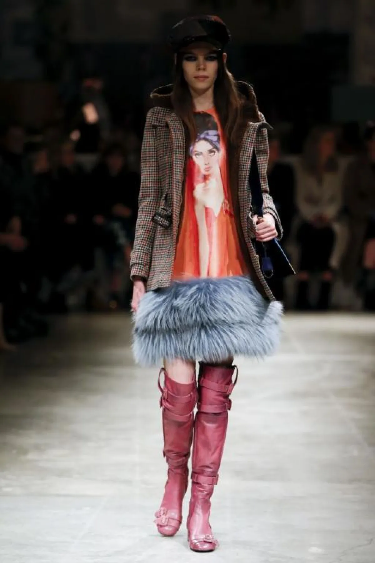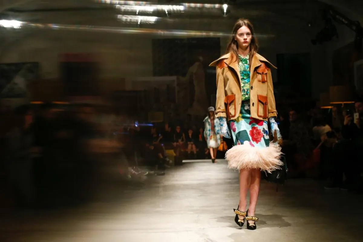 وكذلك تابعنا عرض أزياء دار "برادا" Prada والذي بدا من عالم آخر، حيث سافرنا مع المجموعة الى حقب زمنية مختلفة وأبرزهاالخمسينات والستينات، لكن البطلة الأساسية في هذه الحقب كانت المرأة التي لطالما شكلت المحور الأساسي في مجموعات "موتشيا برادا" Muccia Prada وهذه المجموعة لم تكن مختلفة، وكالعادة أبدعت في تقديم التصاميم الغنية التي زينها الريش، والكريستال والطبعات الملونة، وأبدعت أيضاً في طريقة تنسيقها مع بعضها البعض. وشاهدنا ضمن المجموعة أيضاً تشكيلة مميزة من الاكسسوارت من شنط اليد والأحذية وغيرها.