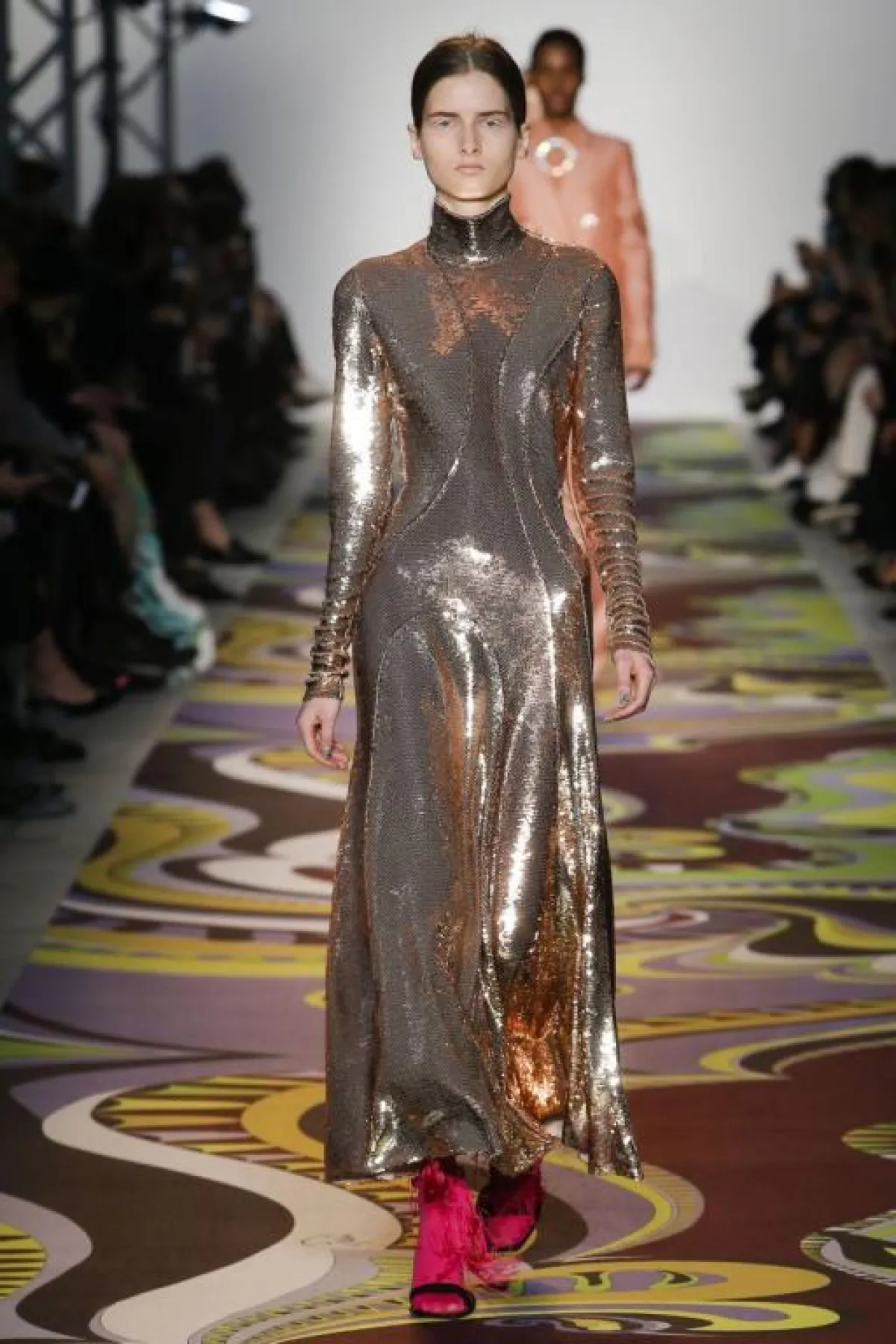 عرض "ايميليو بوتشي" Emilio Pucci كان مخيباً للآمال بعض الشىء في هذا الموسم حيث بدا المدير الابداعي الشاب للدار "ماسيمو جيورجيتي" Massimo Giorgetti أنه يبذل قصارى جهده للفت الانتباه اليه والى تصاميمه الصاخبة بحيث أضاع هوية دار "بوتشي" Pucci التي تتمحور بشكل أساسي حول المرأة وحول جاذبيتها الطاغية، فشاهدنها مجموعة من الألوان الصارخة مثل الفوشيا والأخضر، اضافة الى الشراريب التي امتدت على طول الأقمشة والقبعات الكبيرة المزينة بالشراريب أيضاً التي أخفت وجه العارضات، وتصاميم الجمبسوت البراقة والفساتين المصنوعة من الترتر بألوانه المعدنية، نأمل أن تعود دار "بوتشي" Pucci الى رونقها المعهود قريباً.