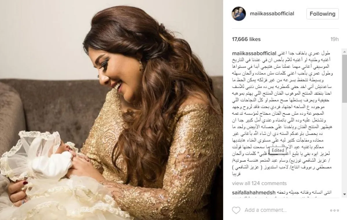 كشفت المطربة مي كساب عن عزمها تقديم أوّل أغنية لها بمناسبة "يوم الأم"، رغم رفضها المتكرّر سابقاً تقديم أغاني المناسبات، ولكنها تراجعت عن موقفها بعد قدوم ابنتها الأولى فريدة، وستقوم بإهداء الأغنية لها، وتمنت أن تكون ابنتها "وش السعد" عليها، وأن تنال حقها كمطربة!!