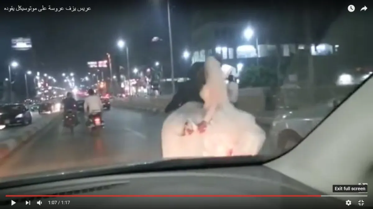 وثَّق مقطع فيديو متداول على مواقع التواصل الاجتماعي "زفة" عروسين مصريين على دراجة نارية.