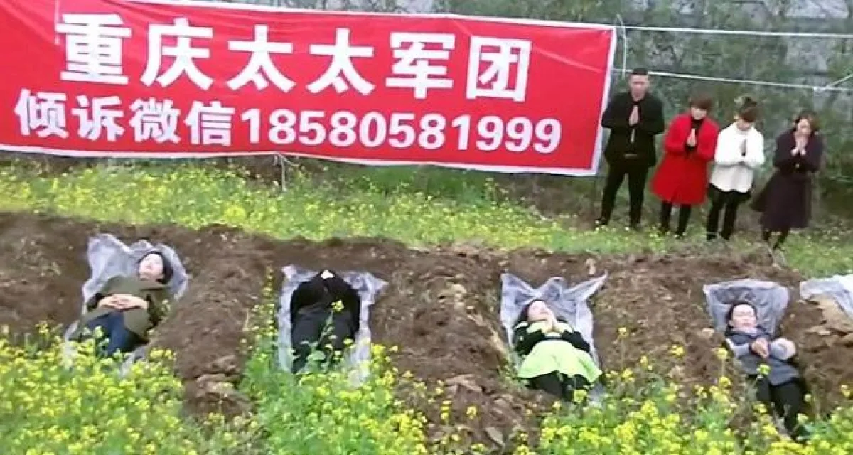 فى بلدة تشونغتشينغ جنوب غرب الصّين أسّست ليو تاييجي مدرسة لتحسين الحالة النفسية للمطلقات واستكمال الحياة من خلال النوم فى القبور، حتى يعشن تجربة الموت، فهي أصعب اللحظات على الإنسان ويشعرهن أن ما مررن به من معاناة ليس آخر العالم، وهناك الكثير من الأشياء التي يجب أن يقمن بها في الحياة قبل الموت وعليهن أن يبدأن من جديد.