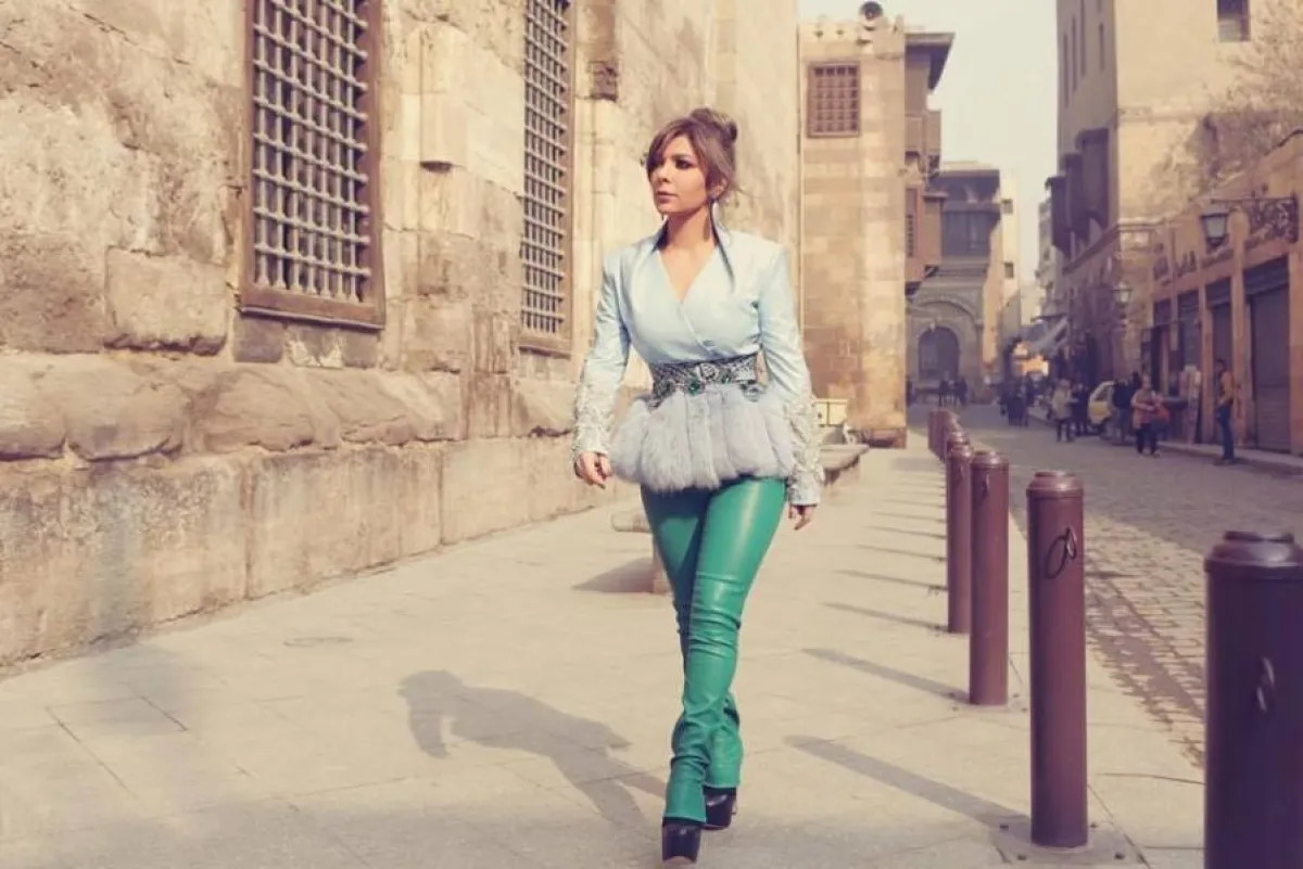 أصالة اختارت بنطال باللون الأخضر مع جاكيت من الفرو الرمادي.