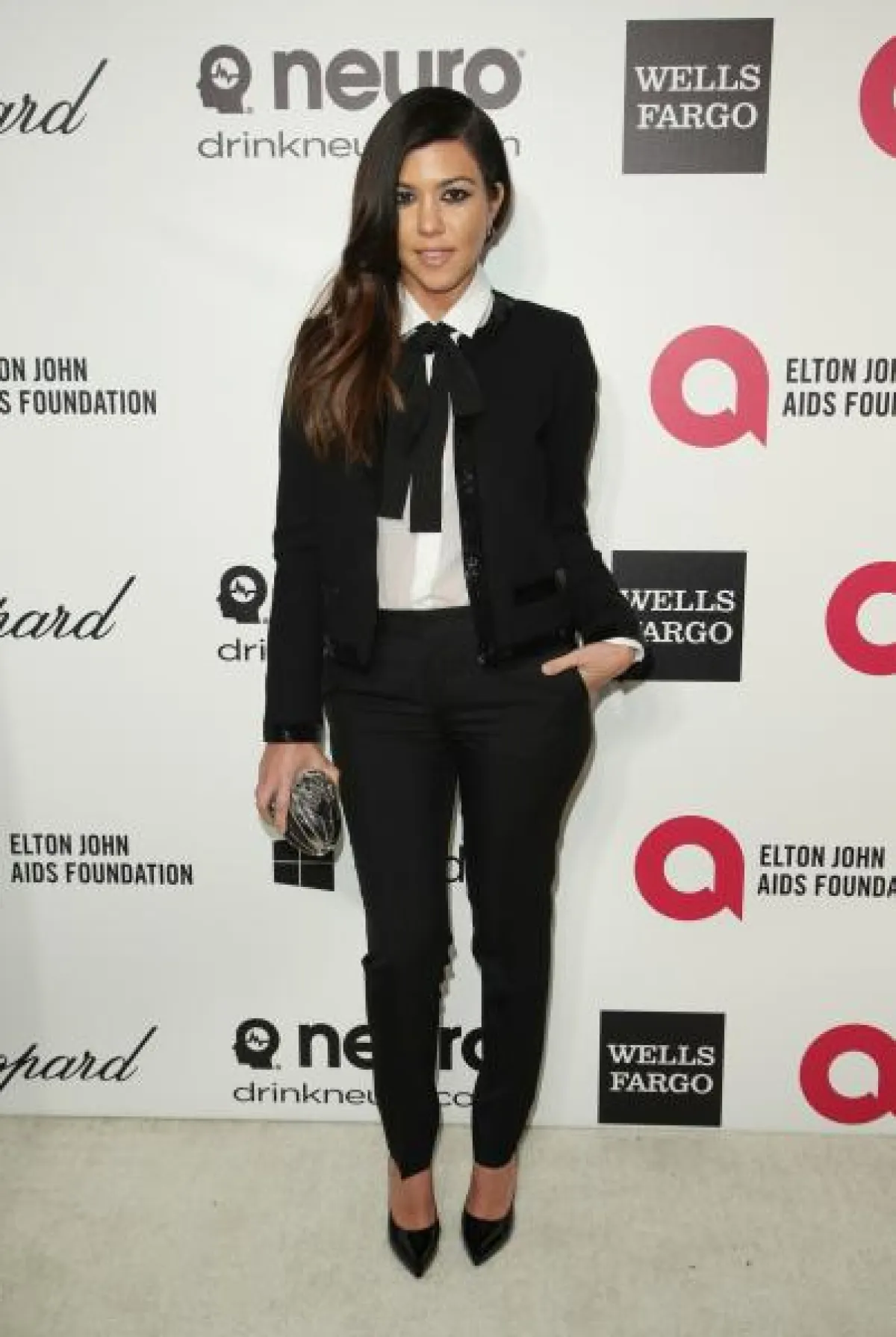 كورتني كارداشيان بإطلالةٍ رجّالية ببدلةٍ رسميّة باللونين الأسود والأبيض.